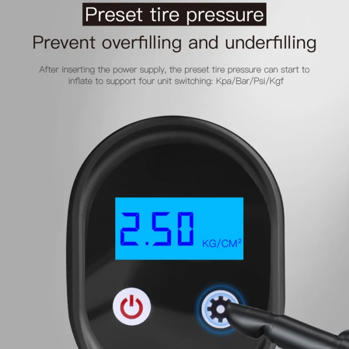 После вставки источника питания, предустановленное давление в шинах может начать надувать для поддержки четырех переключений: кПа/бар/пси/кгс
