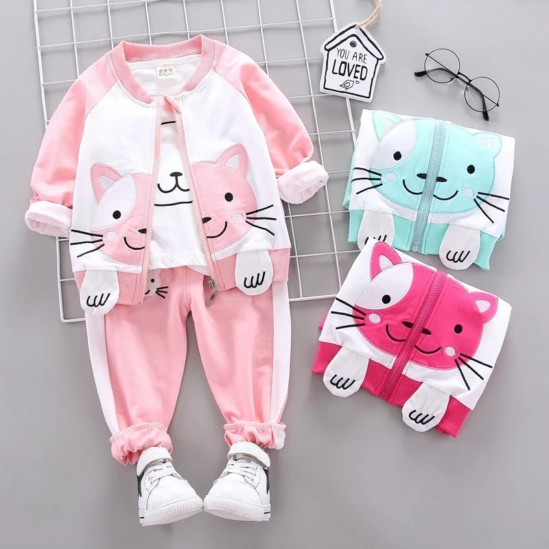 Коллекция 2019 года, осенне-зимняя одежда для маленьких девочек Одежда для младенцев пальто для девочек + футболка + штаны, комплект одежды из 3 предметов комплект одежды для новорожденных девочек