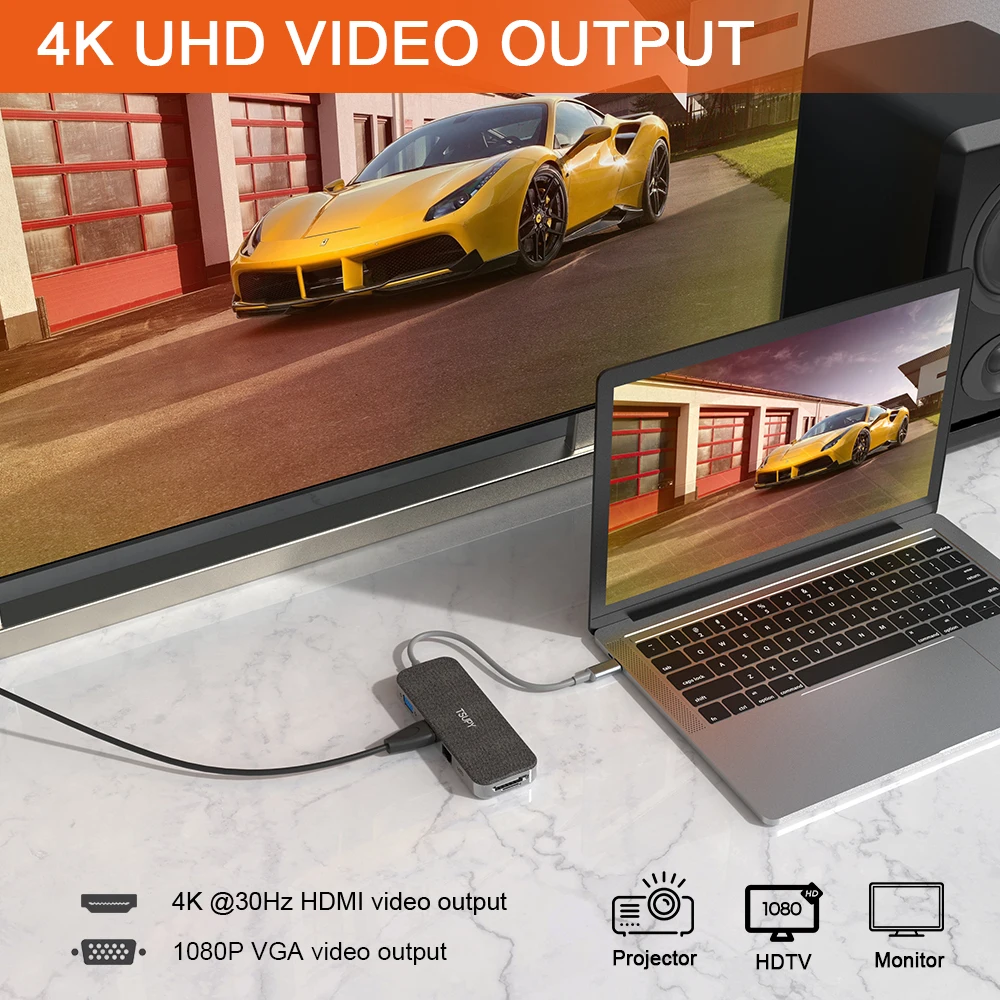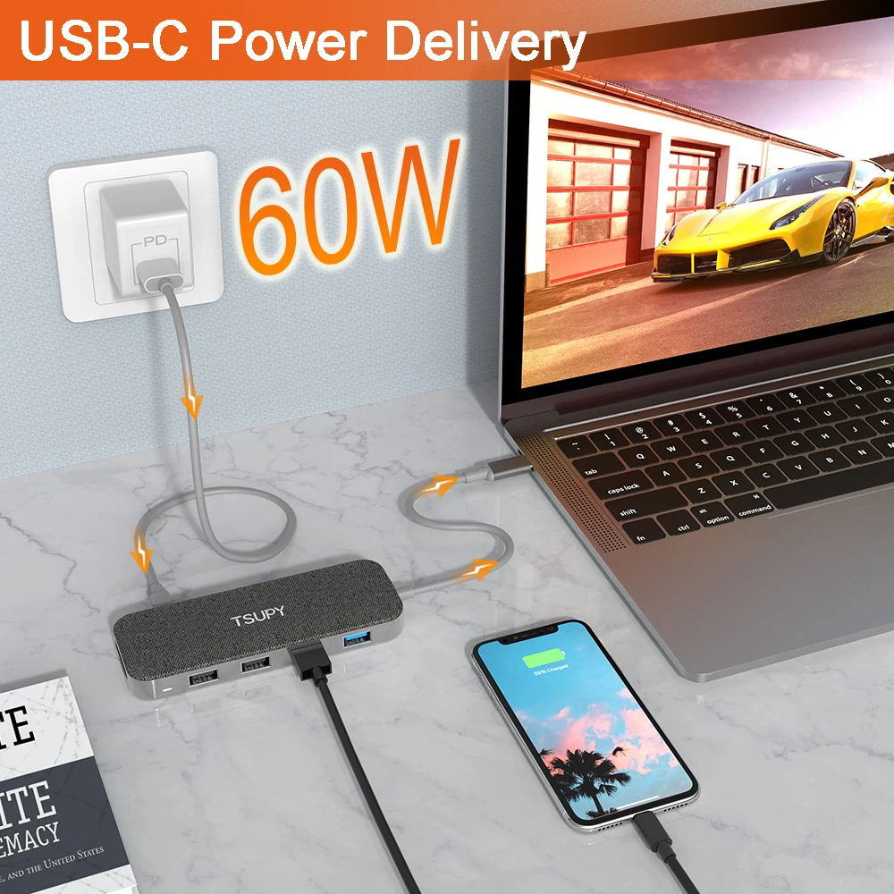 Порт USB C на вашем компьютере должен поддерживать видеовыход и доставку питания для портов HDMI, VGA и питания для работы.