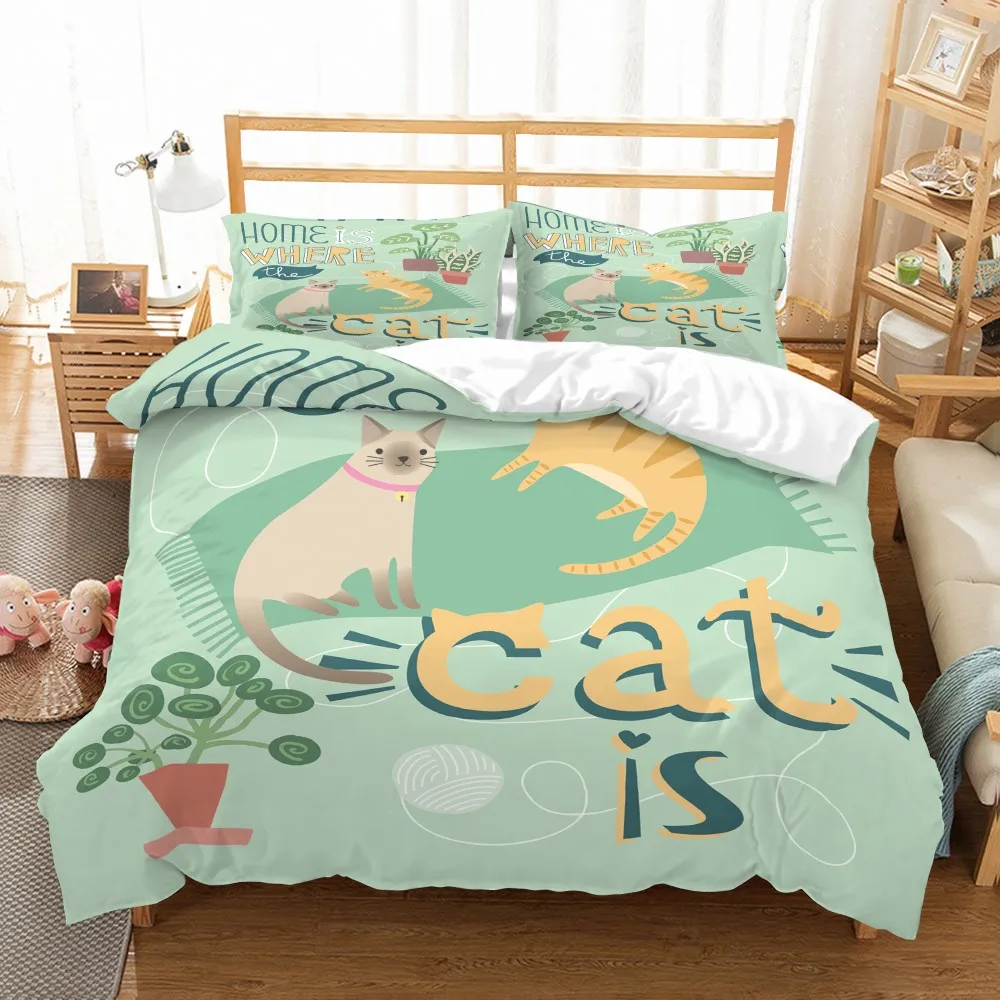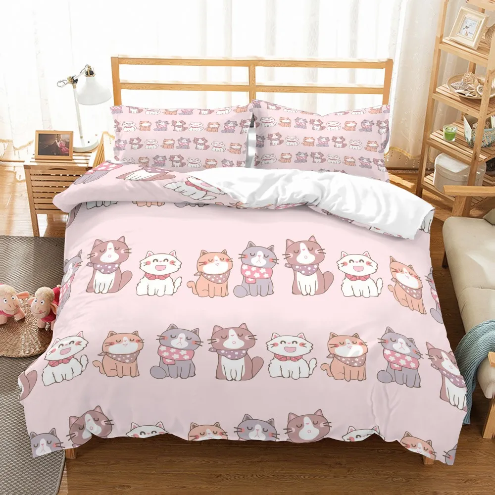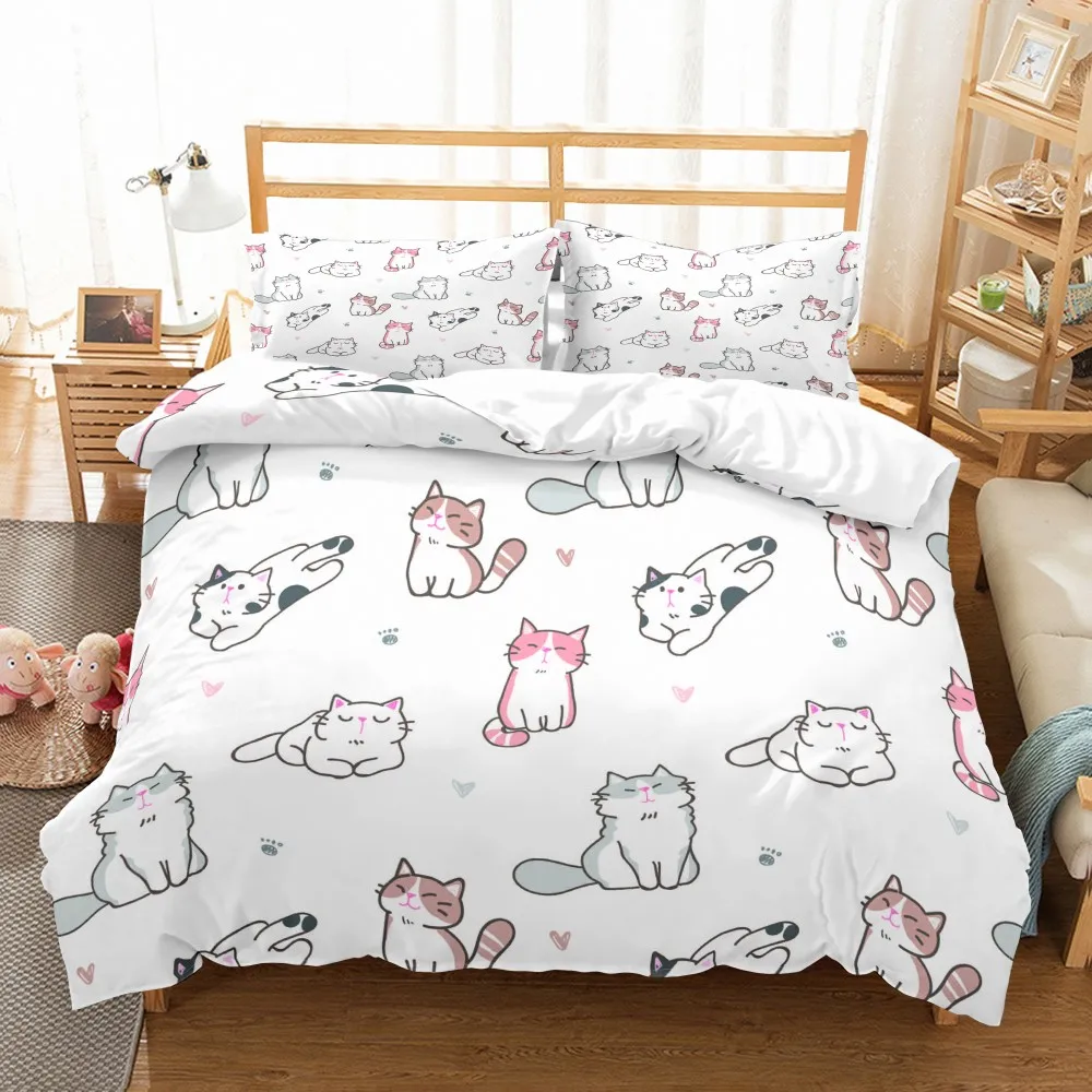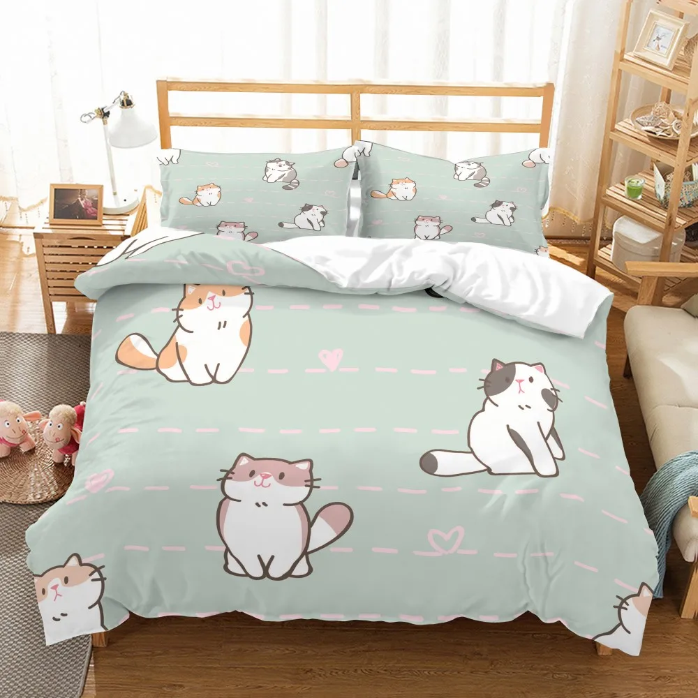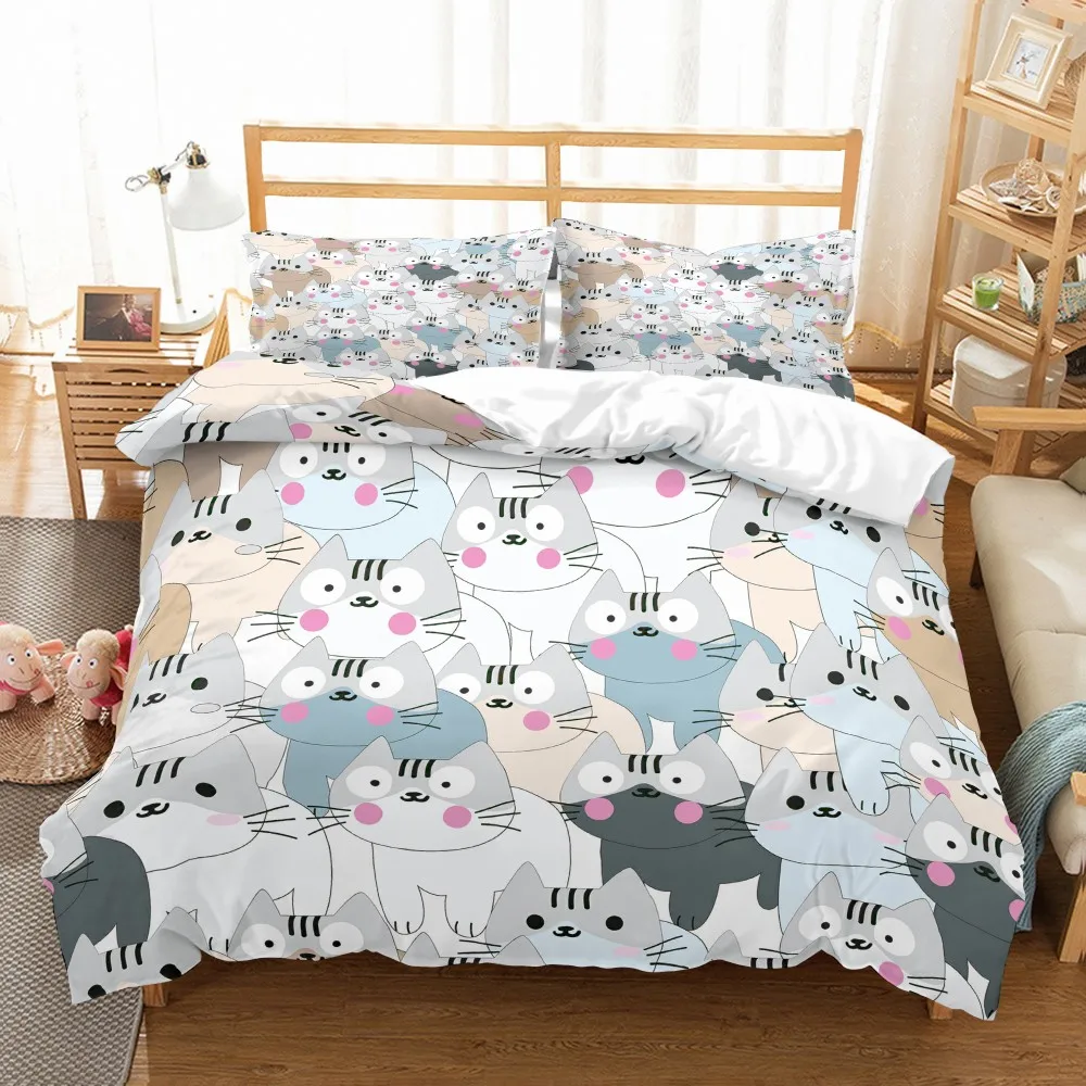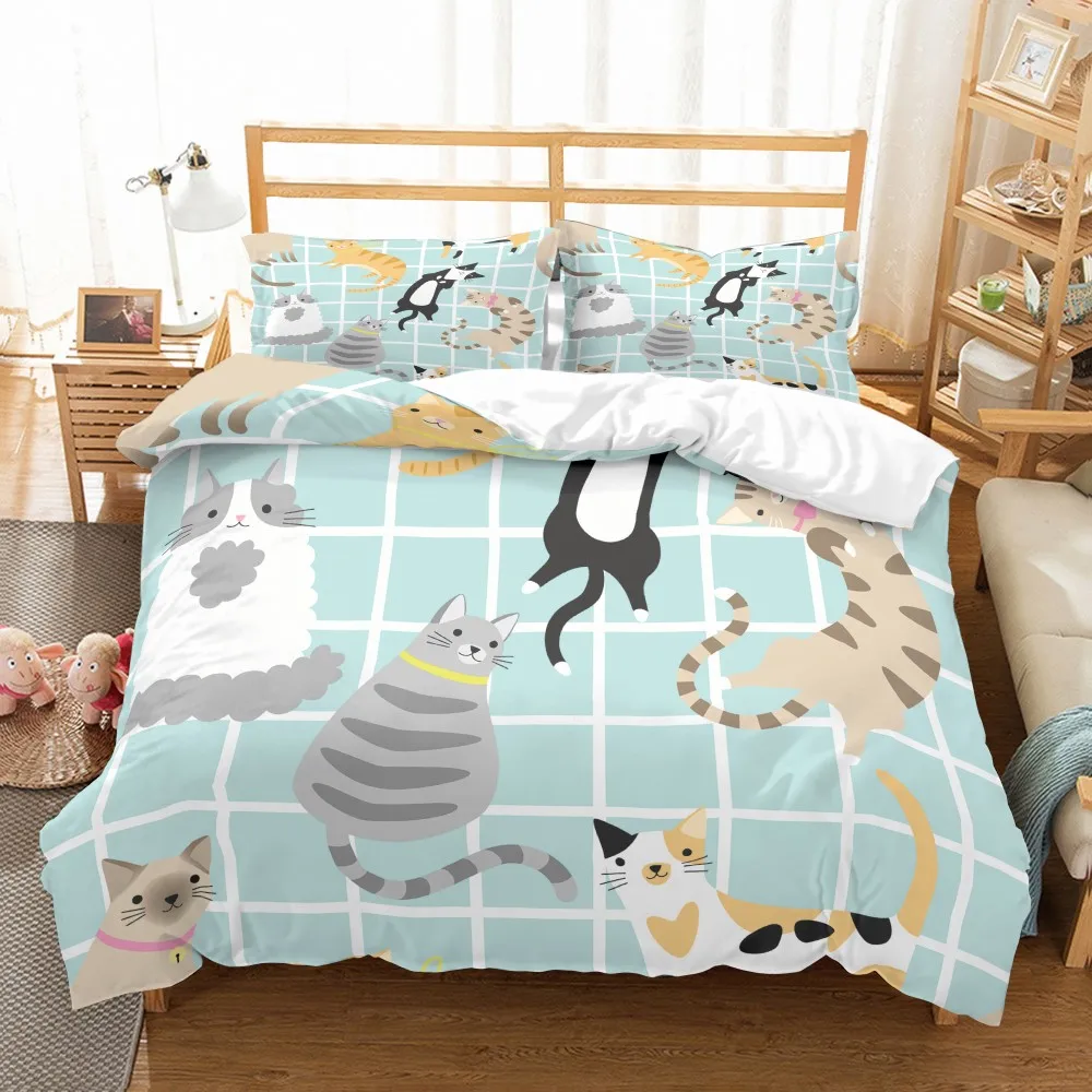 Мультяшный Комплект постельного белья милые кошки из микрофибры пододеяльник набор Полный Королева двойной один размер пододеяльник 2/3 шт домашняя чайная плитка