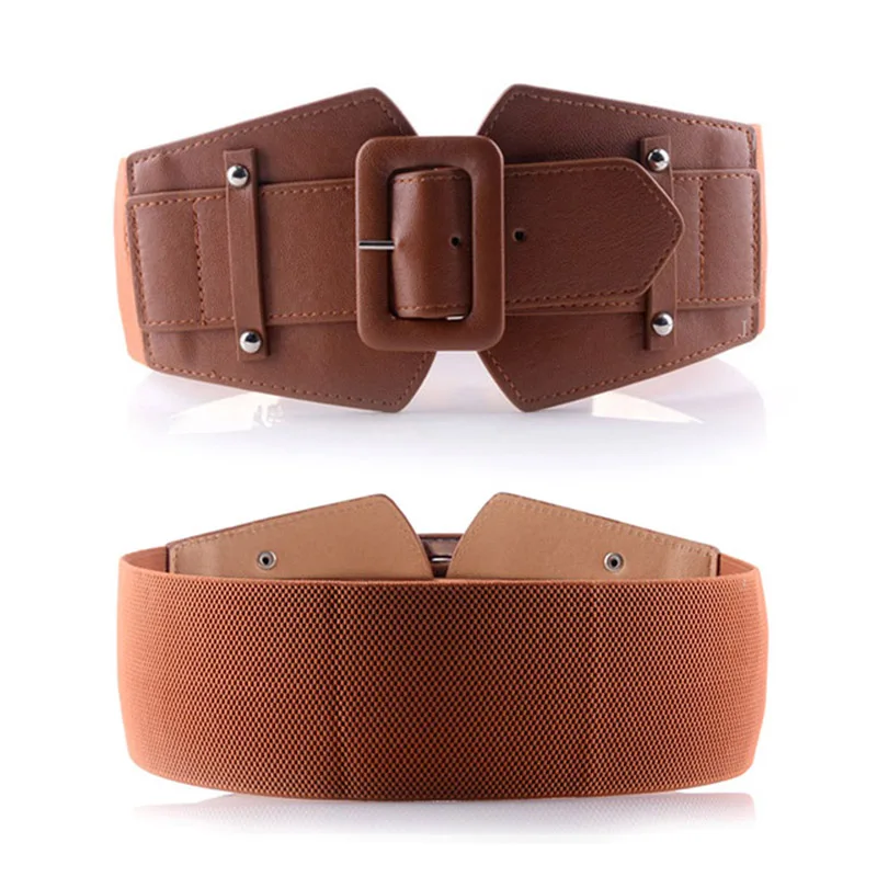 Женский широкий винтажный ремень из искусственной кожи, декоративные эластичные ленты с пряжкой