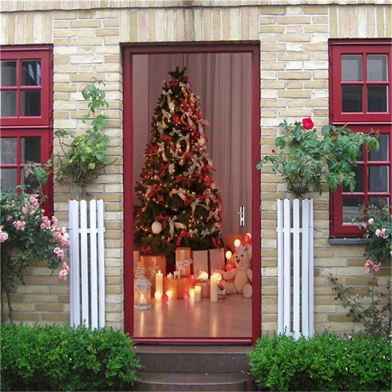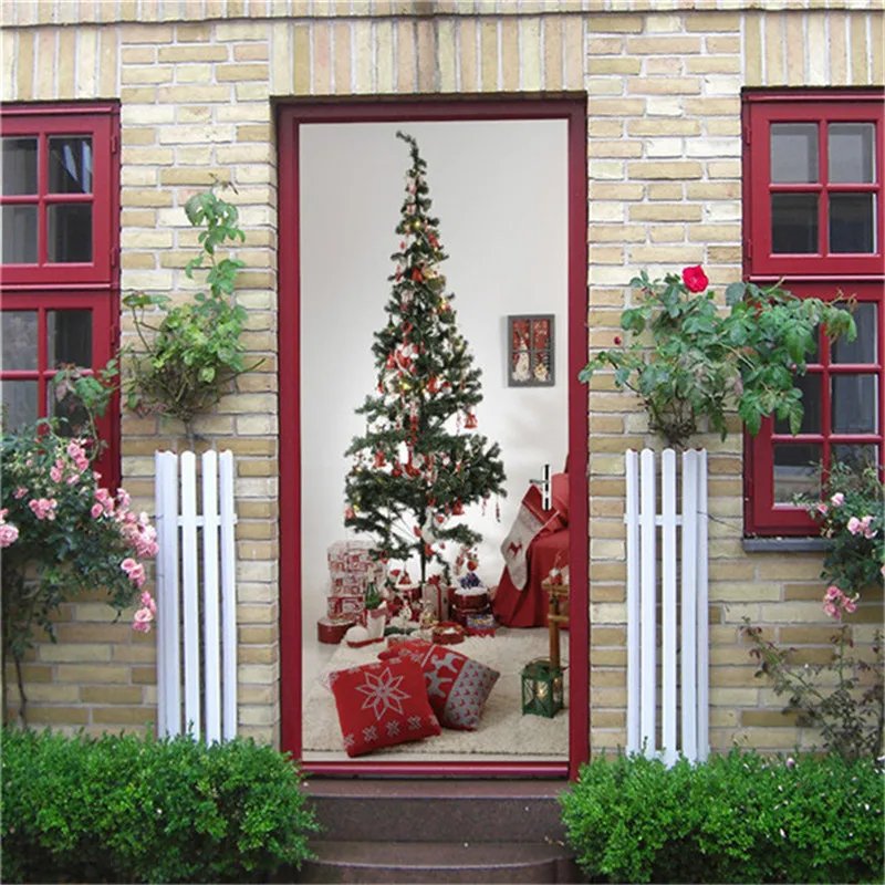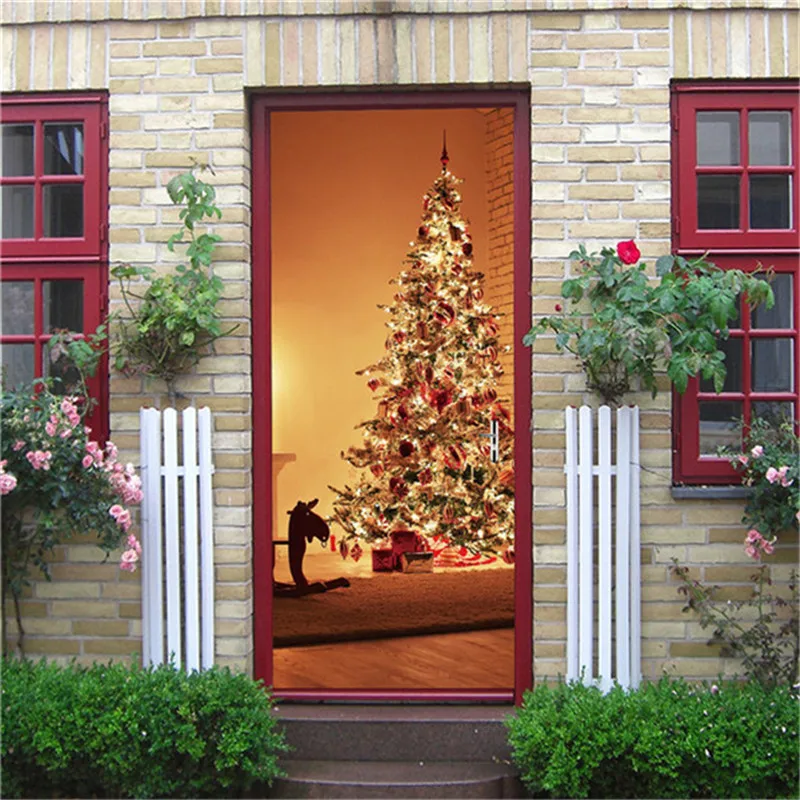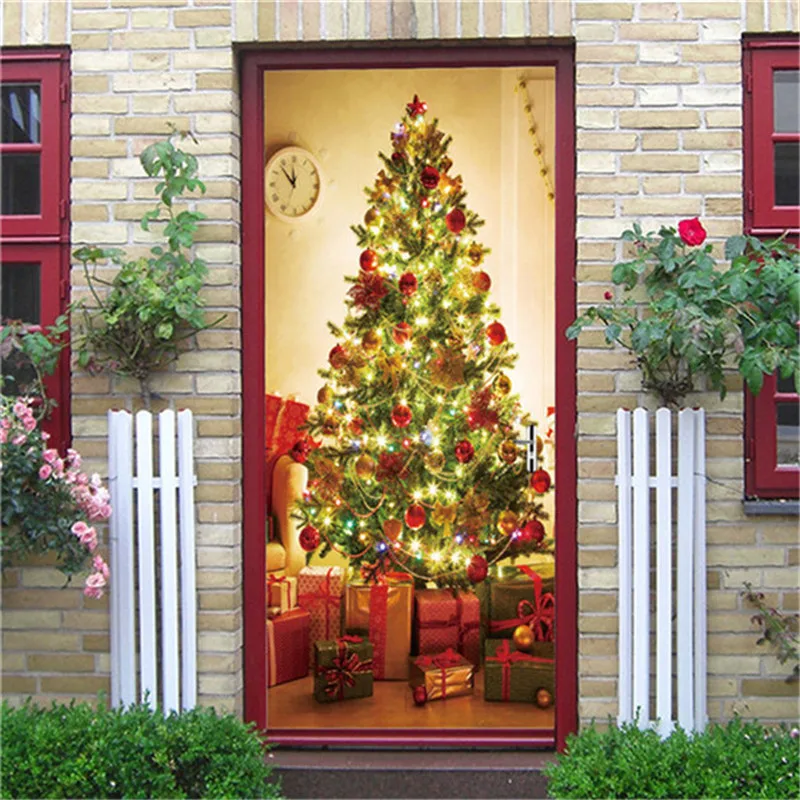 Наименование товара: Рождественская елка Праздничные наклейки на дверях DIY самоклеящиеся обои фрески двери Гостиная детской комнаты настенный Декор уличный наклейки