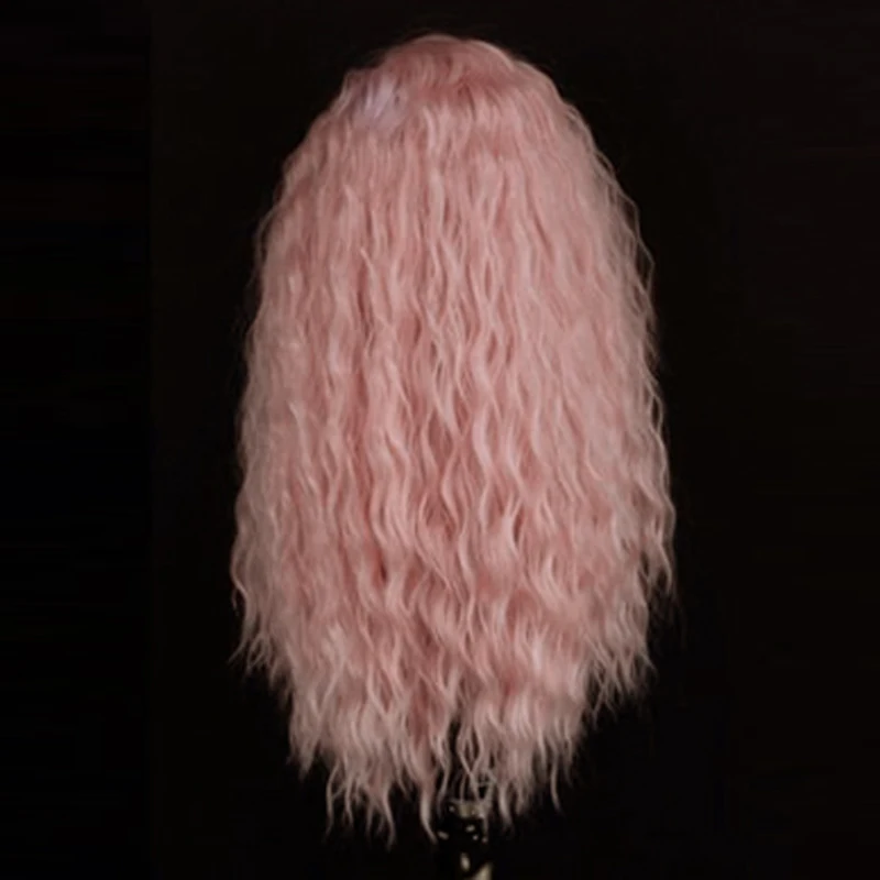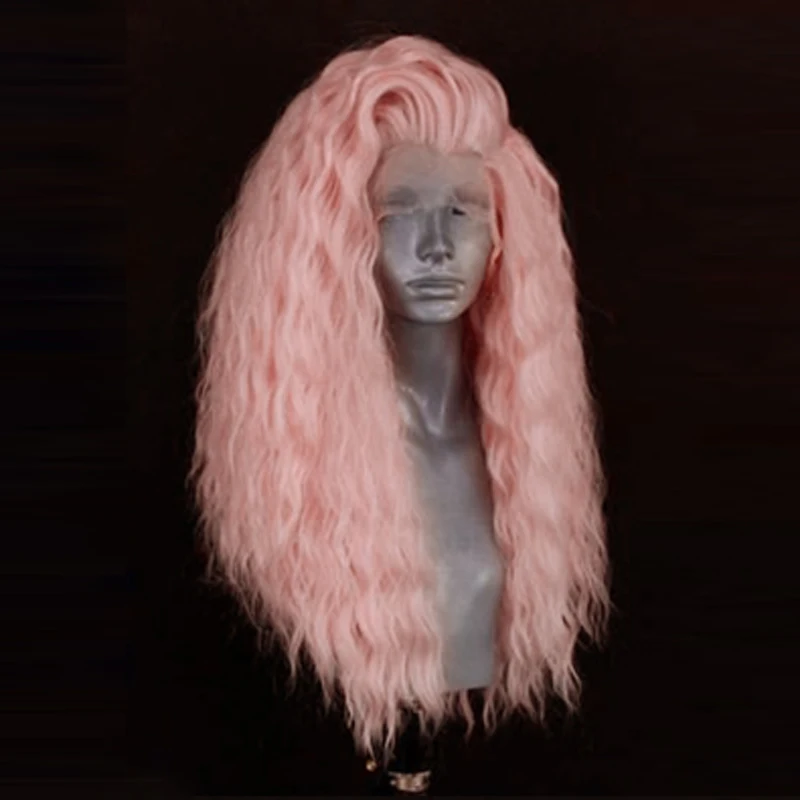 Харизматичный розовый парик, длинные вьющиеся афро-парики, синтетический парик на шнурке спереди, термостойкие волосы из термостойкого волокна, парики на шнурке для женщин