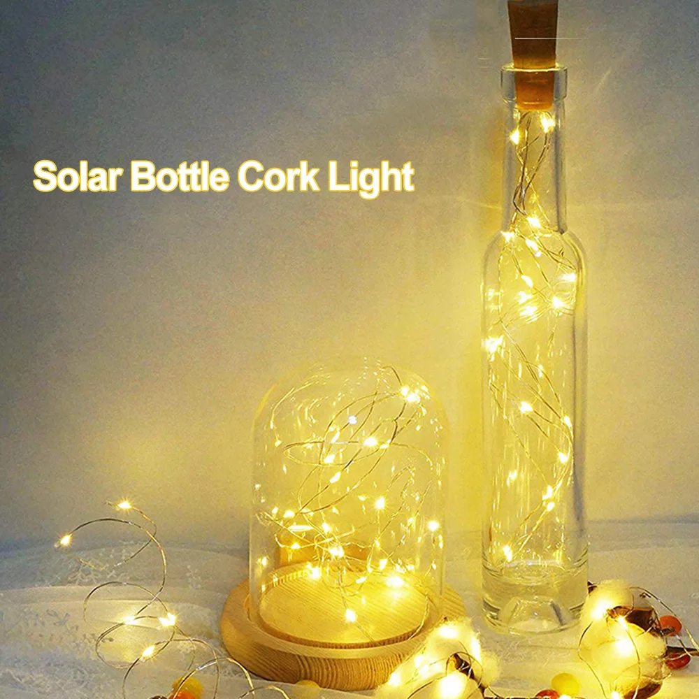 Пробковый свет для вина Портативный в размере и весе. Мягкий медный провод легко Согнут и формируют. Энергосберегающая солнечная панель. Светоизлучающий диод, теплый белый свет, время дальнего света и высокая яркость. Красивый свет может быть милым украшением многих случаев.