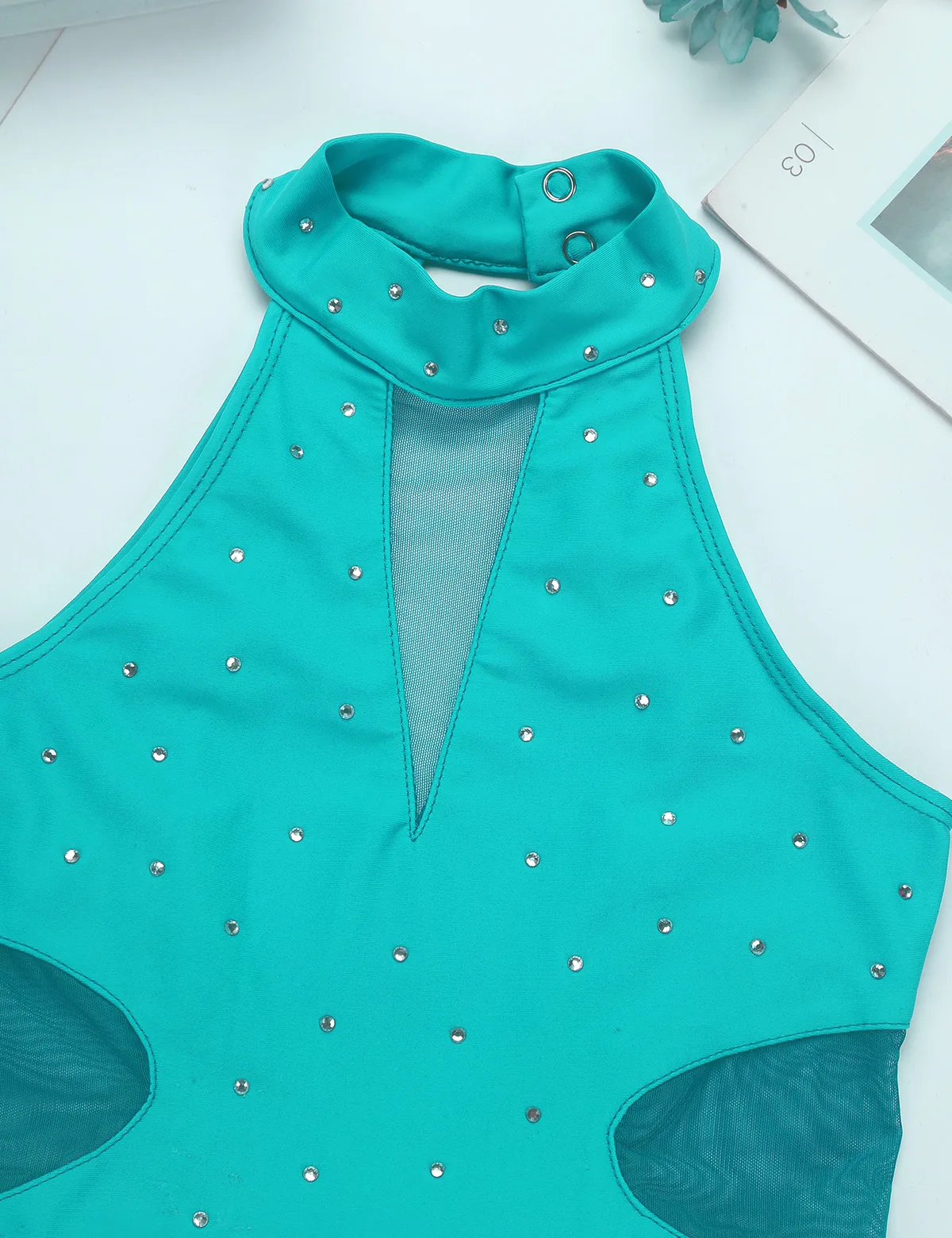 Трико платье изготовлено из полиэстера, сетки и страз, ручная стирка.