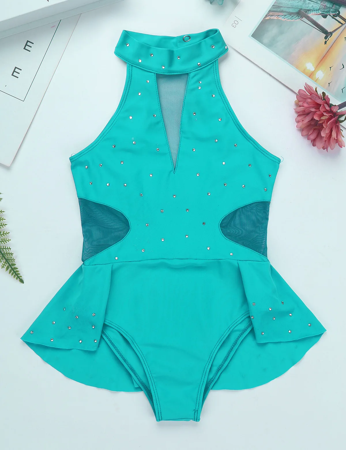 Сетчатый шов спереди и две стороны талии. 1 слой с оборками и круглым вырезом сзади на талии. Красивая Одежда для танцев для вашей девочки.