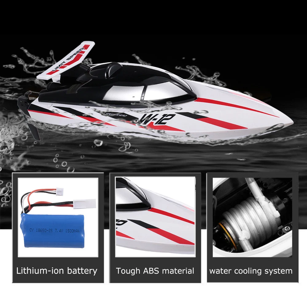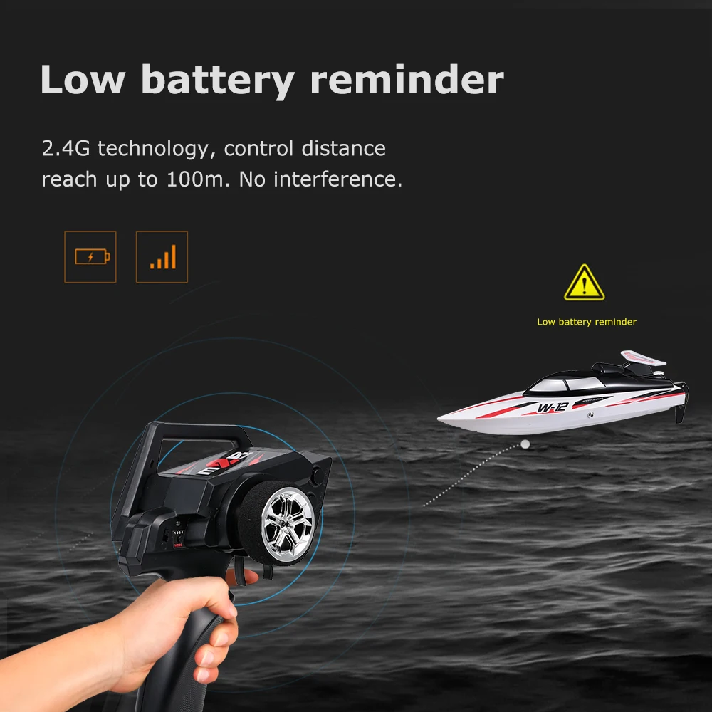 Изготовлены из ударопрочного АБС-пластика, прочные и гладкие. Высокая скорость 35 км/ч, вращение и автоматическое переключение. Современная технология 2,4G, дистанционное управление до 100 м. Никаких помех. С перезаряжаемой батареей, вы можете зарядить лодку снова и снова для неограниченного использования.