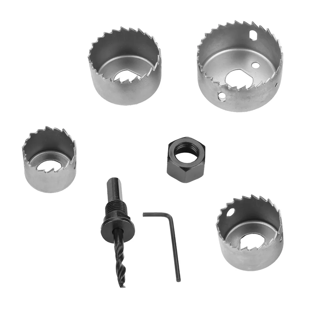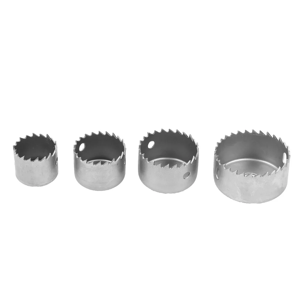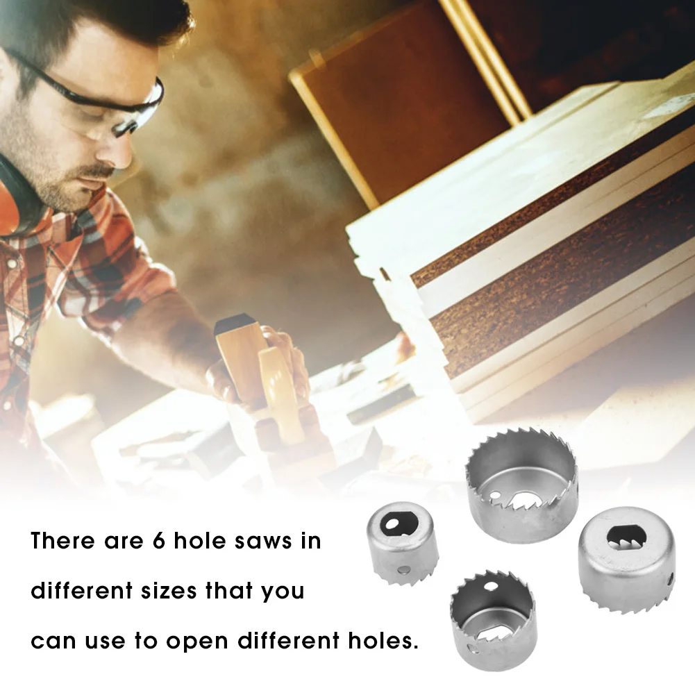 Кольцевая пила изготовлена из углеродистой стали, прочная и практичная. Лезвие очень остро и устойчиво к резке. Имеют хорошую перфорацию. Он удаляет материал с края отверстия, вырезая диск материала. Идеально подходит для установки замков, ручек в дверях и шкафах или сверления отверстий большего диаметра через столы и т. д. Данное отверстие пилы подходит только для дерева, не используется в металле В наличии 4 отверстия в различных размерах, которые можно использовать для открытия различных отверстий.