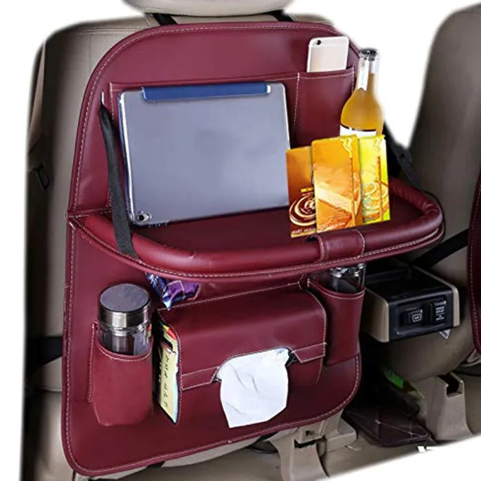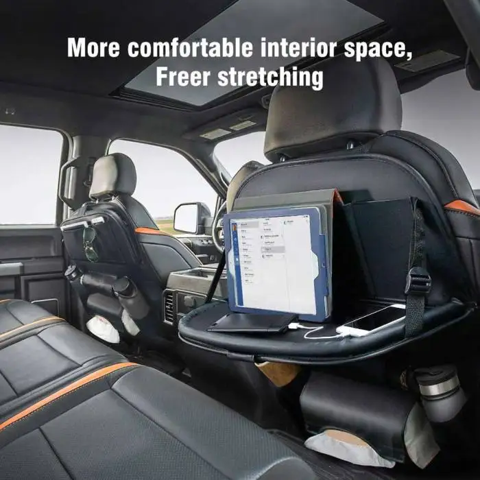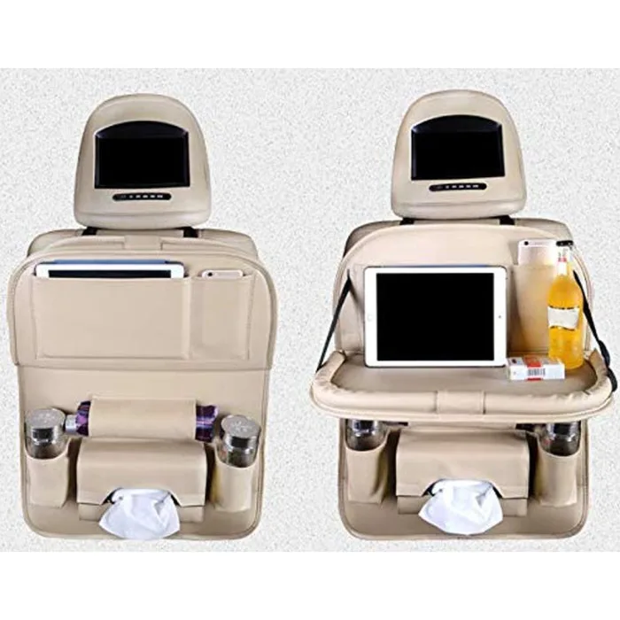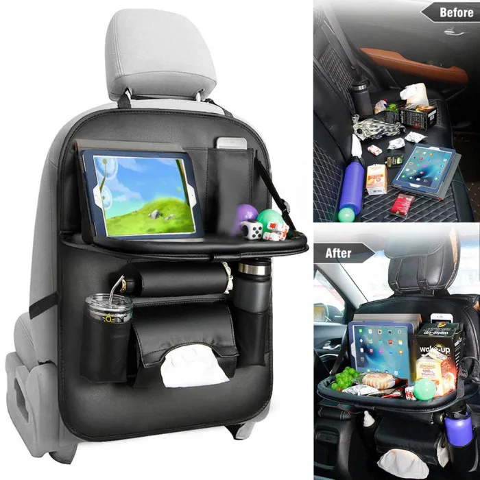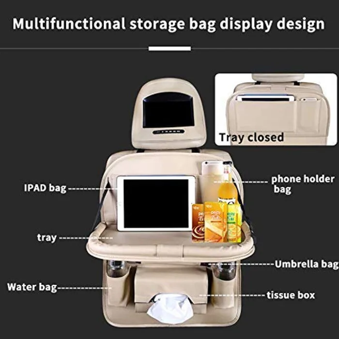 Многофункциональный Органайзер на заднее сиденье автомобиля:Со складными карманами для стола и 8 отдельными отделениями обеспечивает быстрый доступ: для iPad mini, 2 телефонов, 2 бутылки, коробка для салфеток, зонтик и много повседневных вещей, этот органайзер для автомобиля достаточно универсален, чтобы предложить вам аккуратную и просторную среду в автомобиле.
