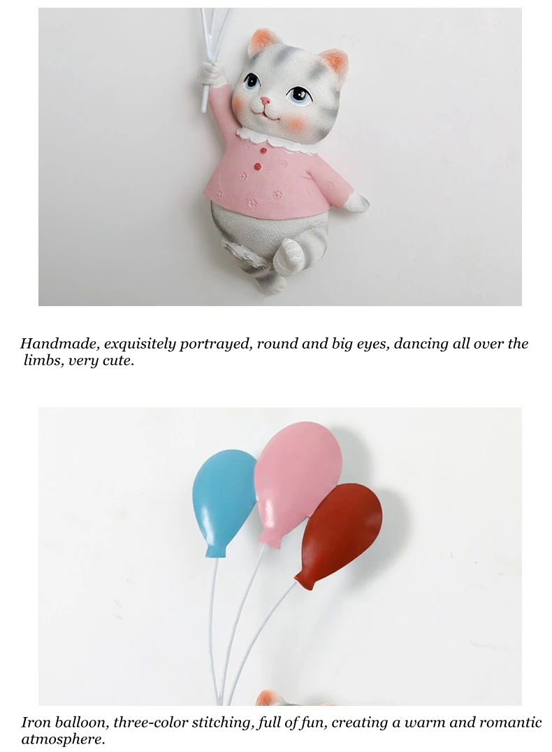 1. Экологически чистый материал смолы, не выцветает, не пахнет, можно использовать с уверенностью. 2. Ручная работа, изысканно изображенные, круглые и большие глаза, танцуют по всей конечности, очень мило. 3. Железный шар, трехцветная строчка, полная веселья, создающая теплую и романтическую атмосферу. 4. Помещается в гостиную, крыльцо, детскую комнату, спортивную комнату, создавая невероятное пространство для детей. 5. Легко установить, не повредит стену, интересный подарок, очень подходит для Новоселье, дня рождения или праздничных подарков.