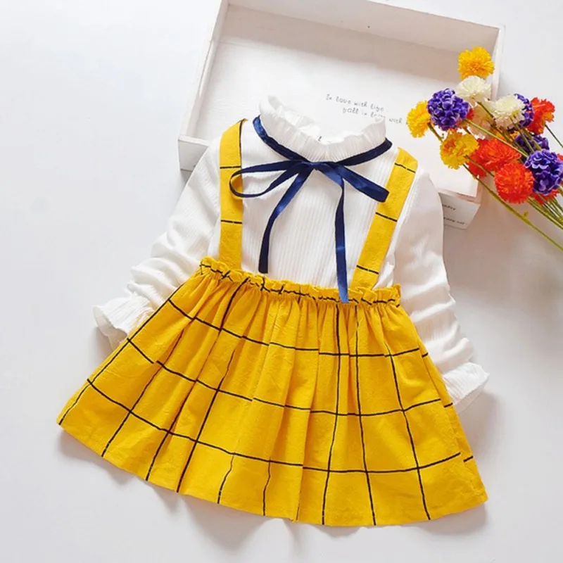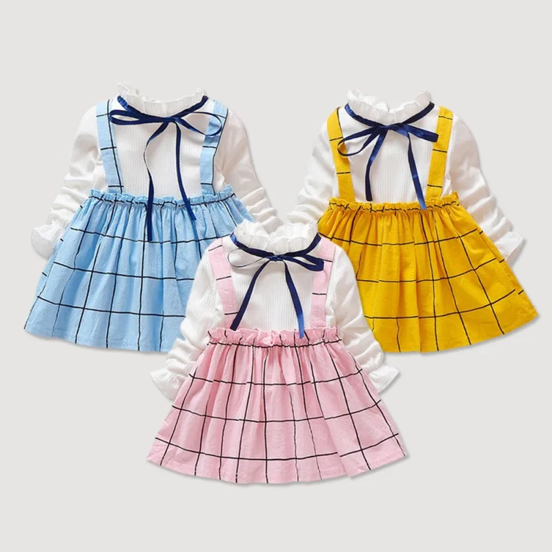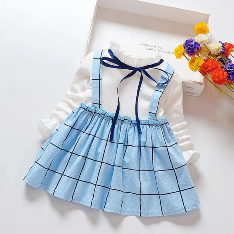 Весенне-осеннее платье для девочек мягкие хлопковые детские платья с длинными рукавами детские платья в клетку с лентой для девочек, милая Одежда для девочек