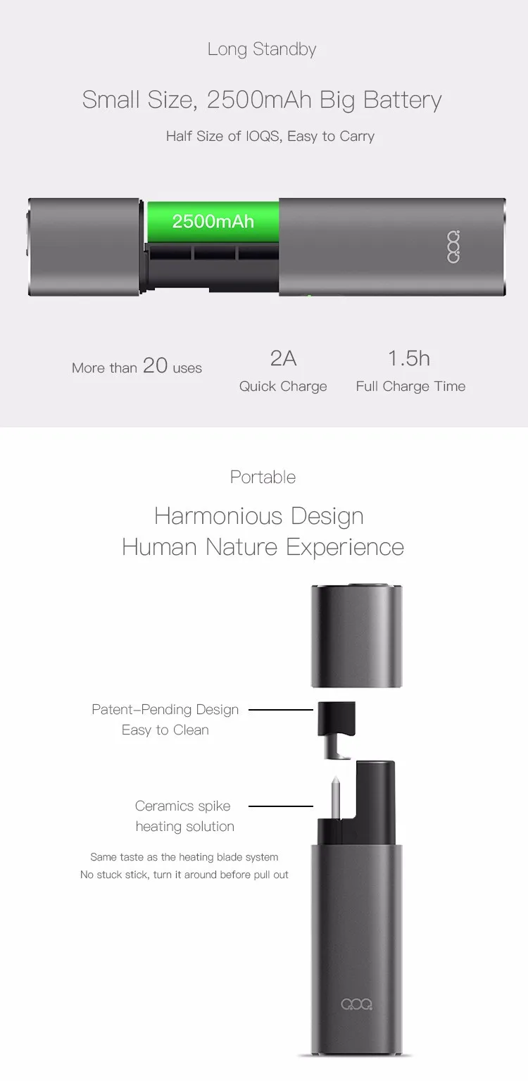 1. Горячая продажа высококачественное нагревательное устройство, для Os и l альтернатива. 2. Не нагревайте устройство электронной сигареты. 3. Полностью металлический корпус с авиационным алюминиевым сплавом, делает его более прочным, гибким и стабильным, чем пластик. 4. С лучшим тепловым излучением, металлические наборы также приносят вам супер слоеный опыт с высоким качеством. 5. Двойная регулировка температуры, гаджет может пригодиться для различных тепловых палочек. 6. Постоянная температура без сжигания тепловых палочек, она приносит вам хитрое, безопасное курить с реальным вкусом. 7. Высококачественный керамический шип для эффективного нагрева, с четырьмя проводное соединение для лучшей проверки температуры. 8. С интегрированным дизайном устройство использует металл с iPhone отделкой и ЧПУ обработки. 9. Смешайте с пластиками типа PEEK, которые имеют лучшее высокотемпературное сопротивление, чем ABS или PC; большая батарея 2400 мАч с длительным сроком службы, поддерживающая более чем 20 видов применения 10. 240 секунд Время нагрева, убедитесь, что вы можете наслаждаться более чем 15 затяжек. 11. Может сделать паузу и продолжить незавершенную тепловую палку, когда вы вернетесь.