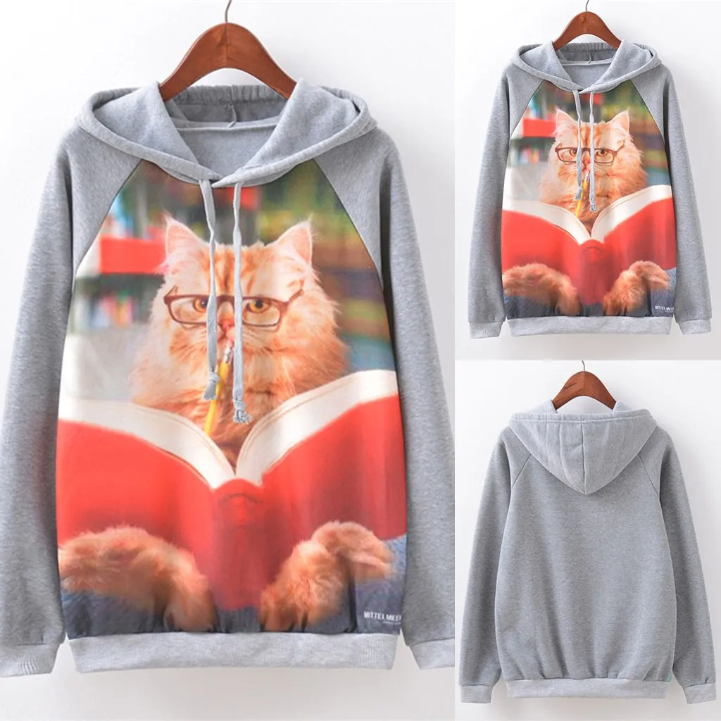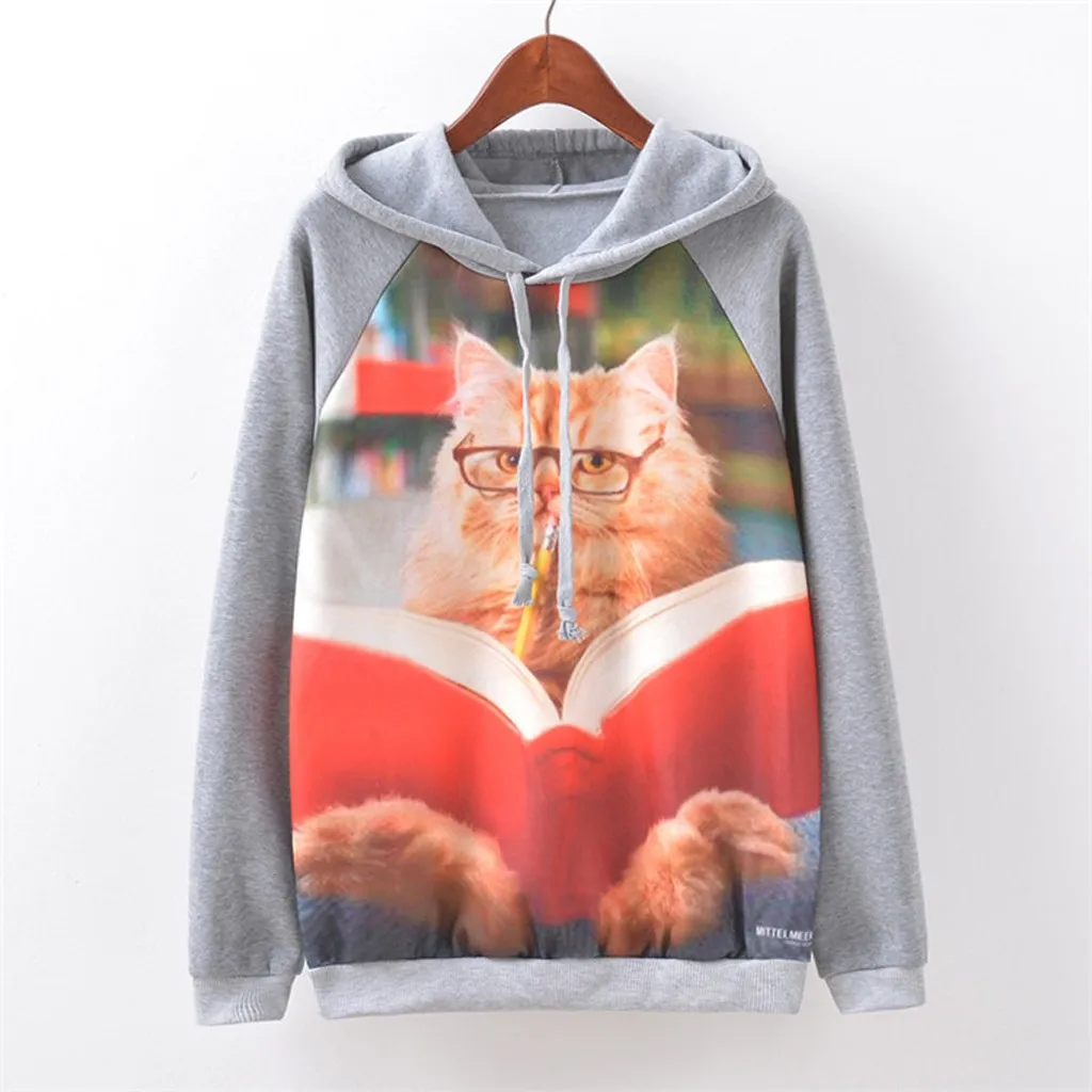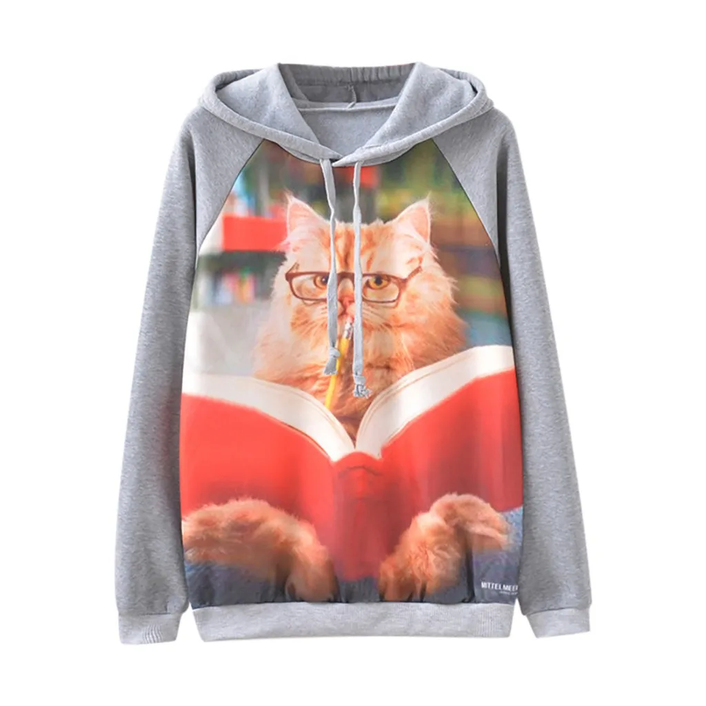 Женский модный Повседневный Свободный пуловер с круглым вырезом и принтом кота