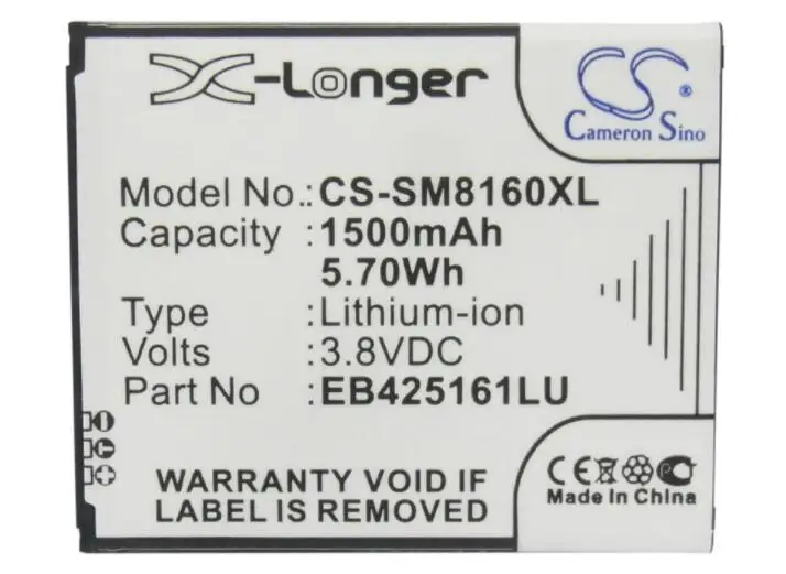 Подходит для модели SAMSUNG Galaxy Ace 2 Galaxy Ace II x Galaxy Exhibit Galaxy S Duos 2 Galaxy Trend II Duos GT-I8160 GT-I8160P GT-S7560 GT-S7560M GT-S7562 GT-S7562i GT-S7568 GT-S7572 GT-S7582 GT-S7898i SCH-I739 SGH-T599 Номер изделия: SAMSUNG EB425161LA EB425161LU Категория: мобильный, аккумулятор для смартфона Объем: 1500 мАч Тип: литий-ионный аккумулятор Напряжение 3,8 в Скорость передачи данных: 5.70Wh Цвет: черный Размер: 60,40x50,30x4,20 мм Код EAN 4894128062936 Состояние: гарантия 12 месяцев Чистая Вес: Вес брутто: 60 г/2,12 унций Минимальный заказ: 1/шт
