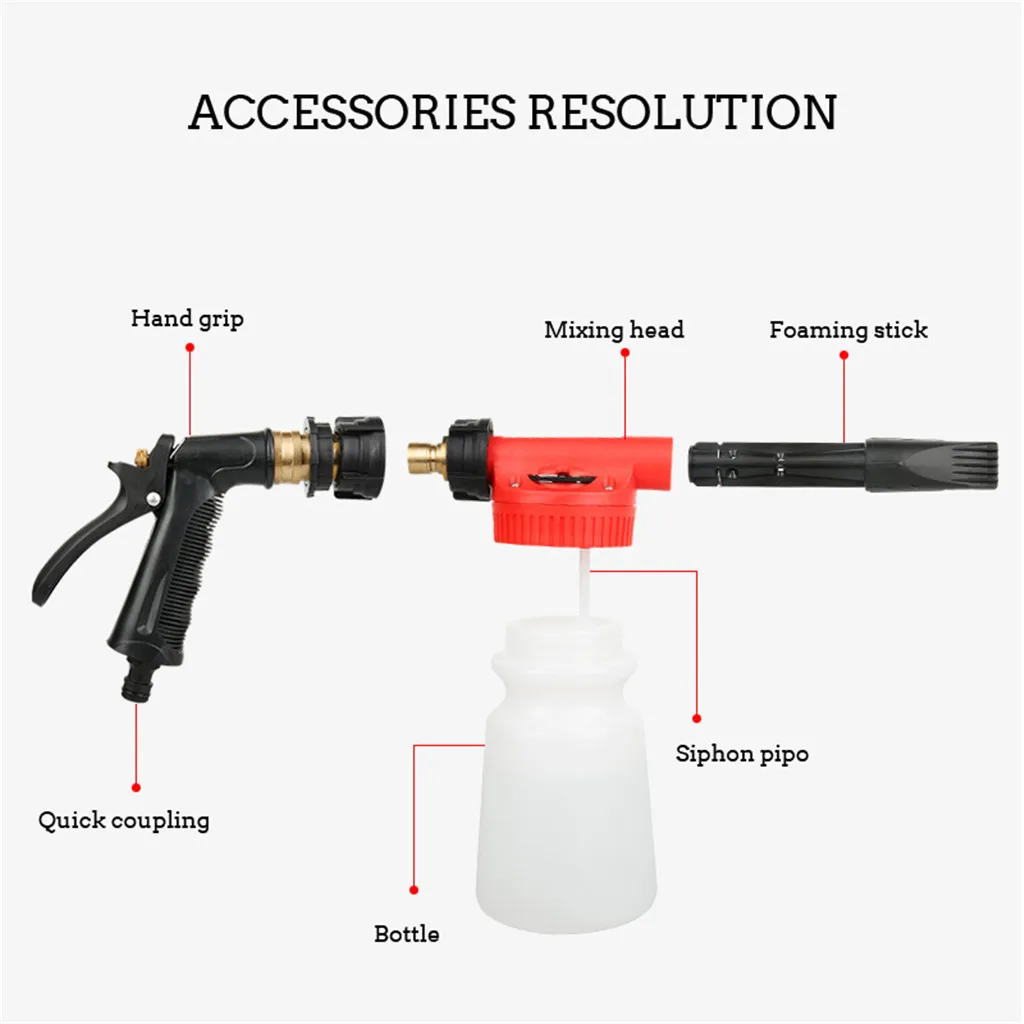 Уникальный пистолет для очистки пены, Большая емкость 1000 мл, работает с большинством садовых шлангов.