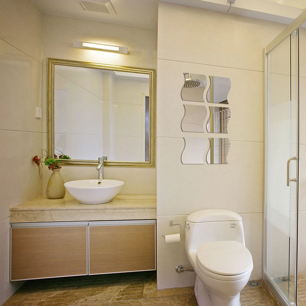 На поверхности имеется защитная пленка, ее можно оторвать после наклеивания зеркальной наклейки на стену.