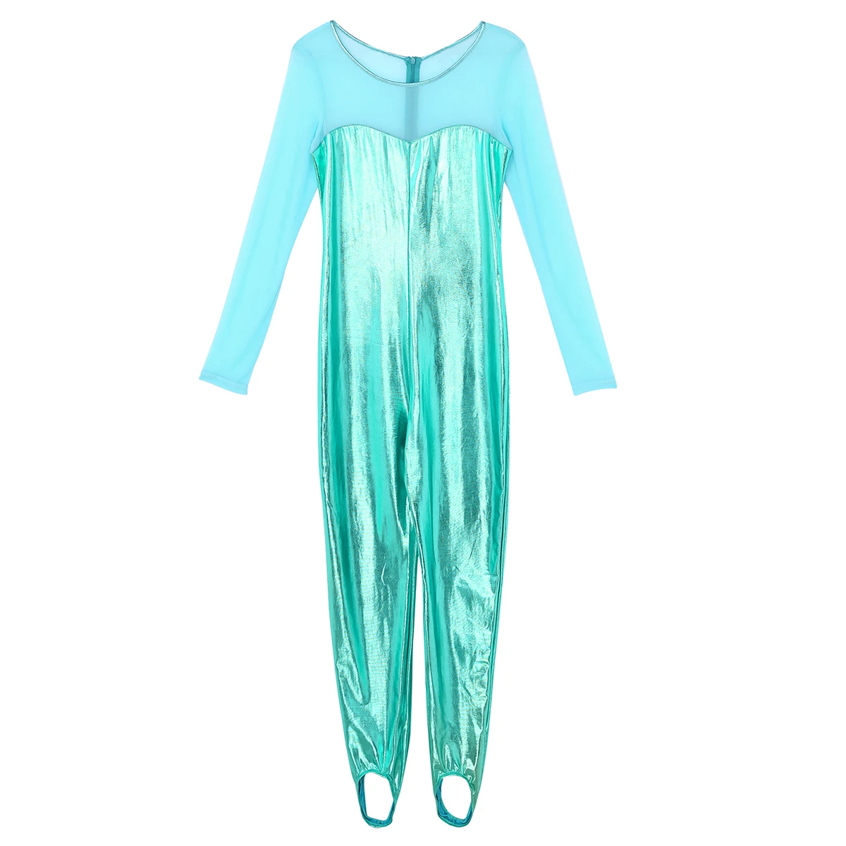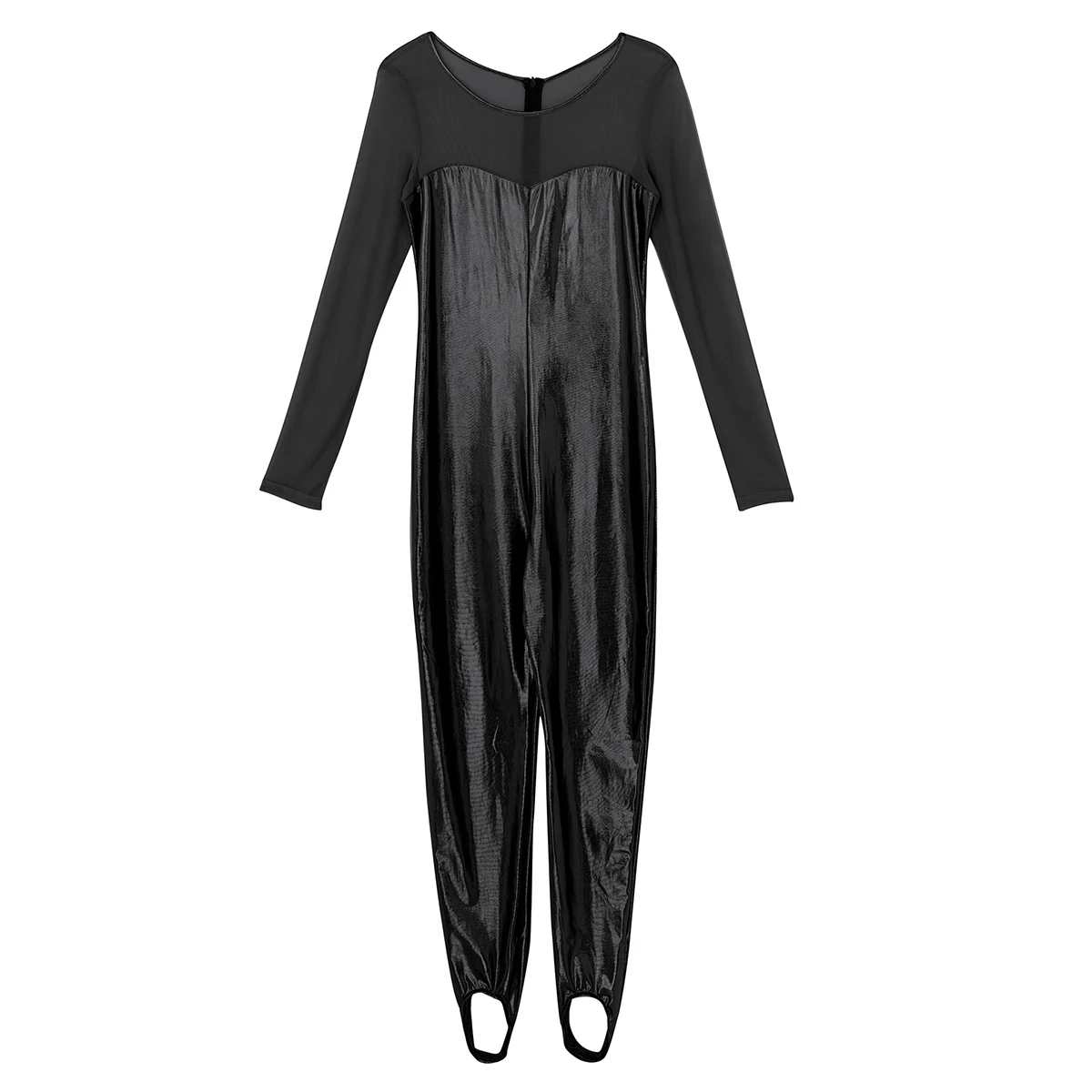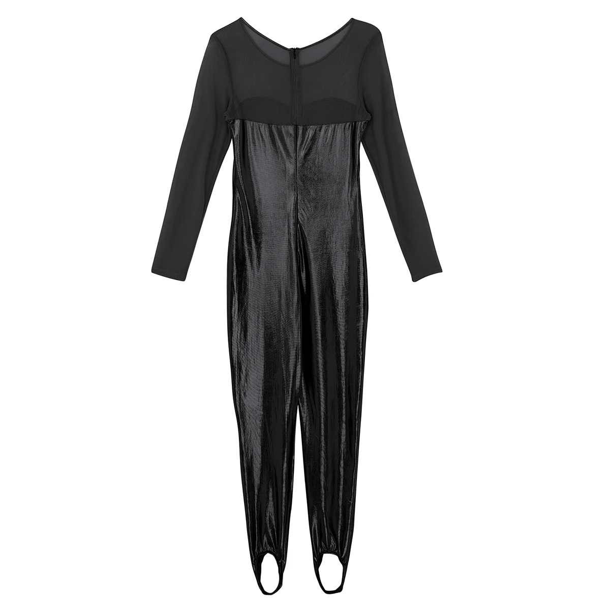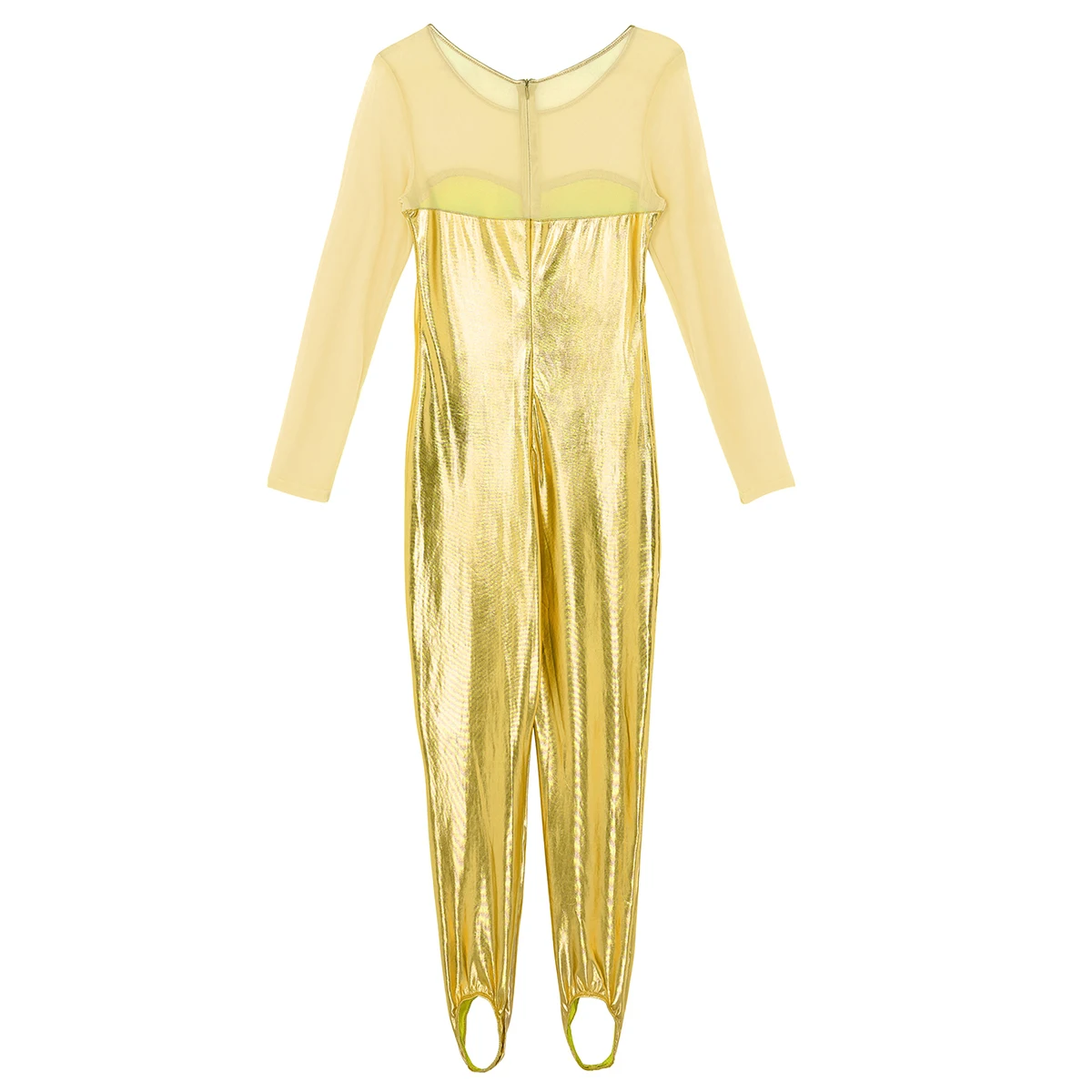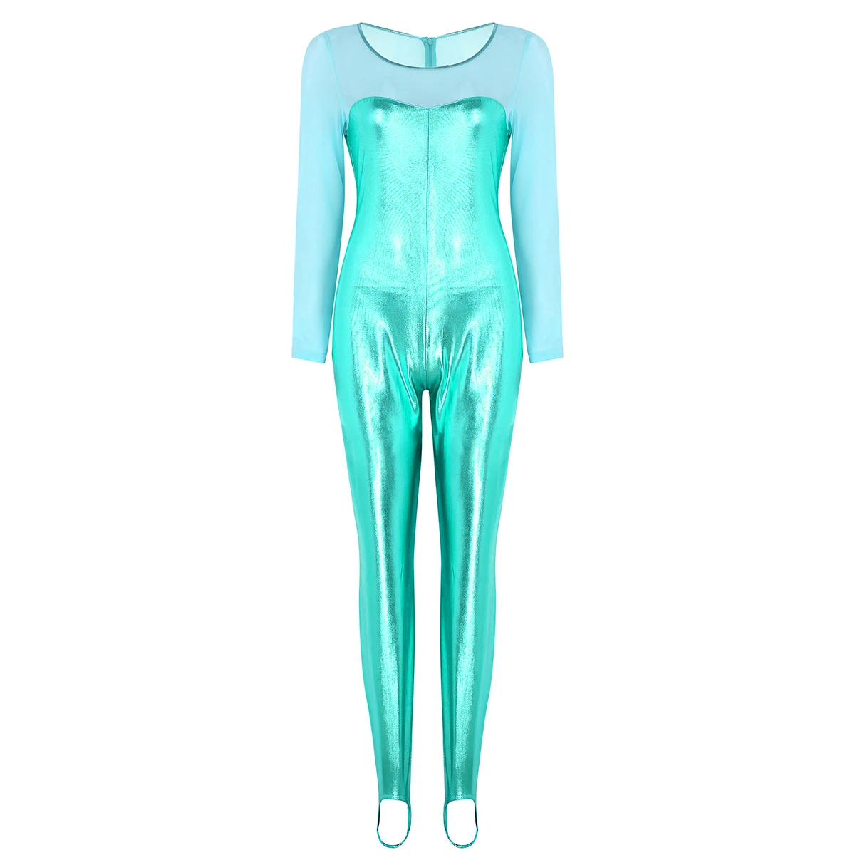Женский слитный купальник с блестящим металлическим рисунком, боди для танцев, скрытая молния сзади. Овальный вырез и длинные рукава, прозрачный сетчатый лиф с соединением внакрой, мешалки для ног, чтобы избежать движения. Хорошо тянущаяся и мягкая ткань, плотно прилегает к телу, хорошо тянется, притягивает глаза. Идеально подходит для вечеринок, ночных клубов, сценических представлений, костюмированных вечеринок, Хэллоуина и т. д. Перед покупкой внимательно сверьтесь с таблицей размеров, рекомендуется ручная стирка.