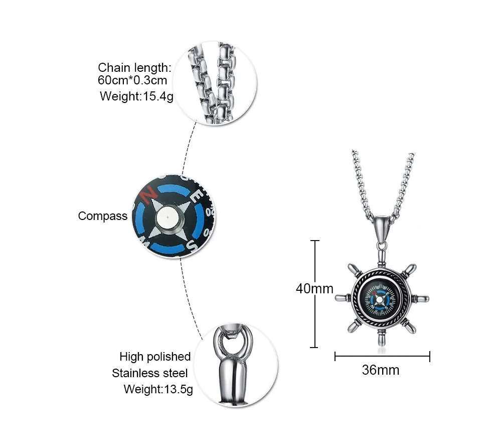 Подвеска в виде компаса с высоким рулем, подвеска с подвеской в виде мини-компаса, снаряжение для кемпинга и пеших прогулок, подарок для мужчин, мужское ожерелье, подарок для женщин, женское ожерелье, ожерелье с подвеской в виде компаса