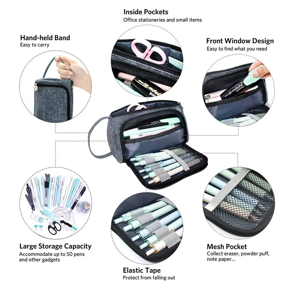 Большой пенал для хранения: Большая емкость для хранения, позволяющая до 50 ручек/карандашей и других гаджетов, легко удерживать канцелярские принадлежности, ножницы, скрепки, графический калькулятор.