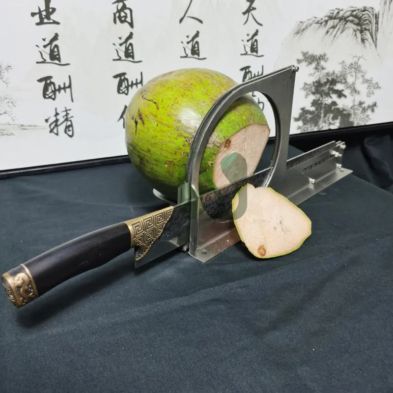 Обрежьте дно вручную после того, как машина очистит кокосовый орех в форме бриллианта.