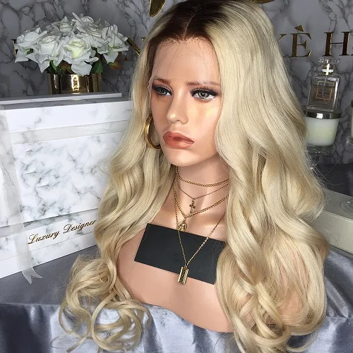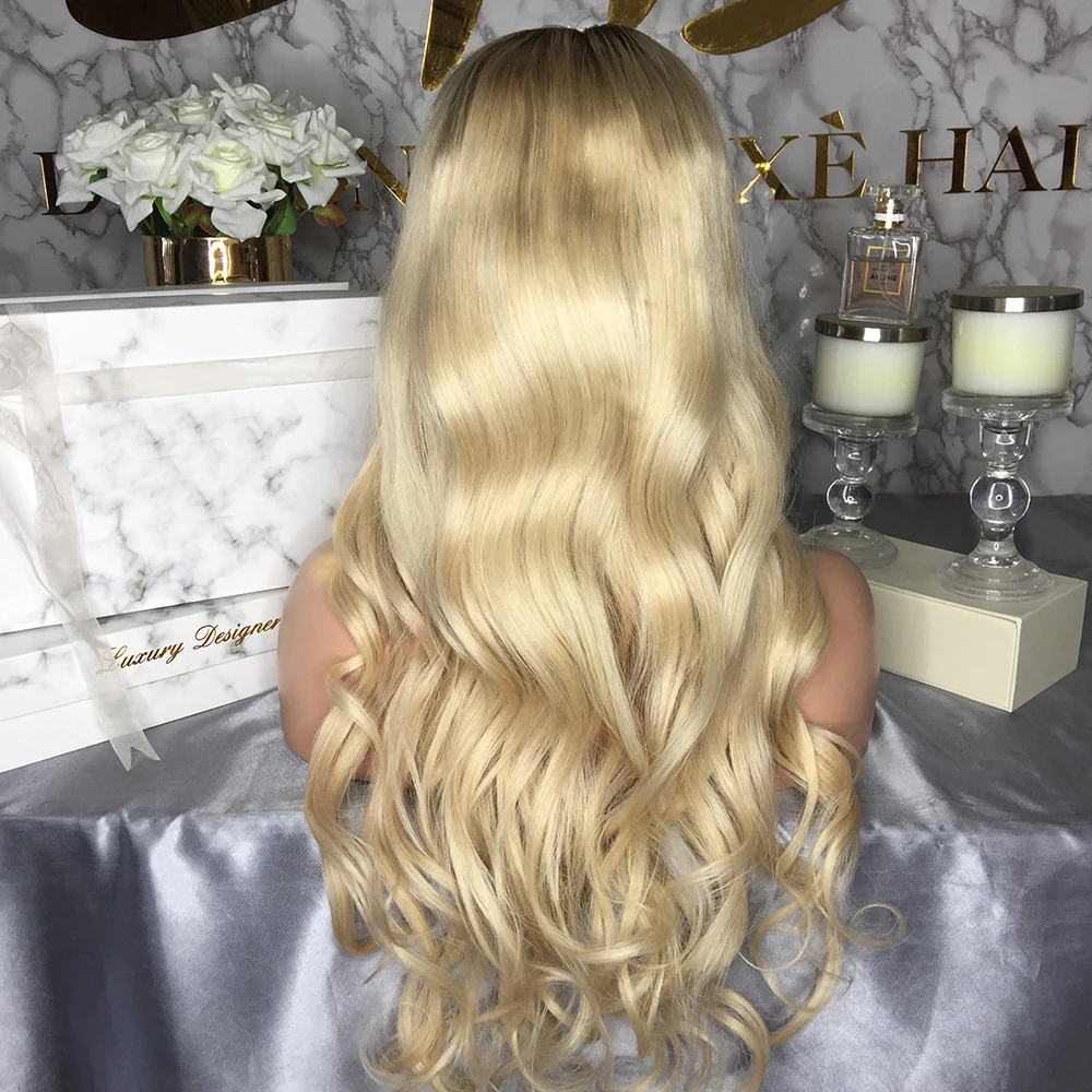 JRX волосы 613 Омбре блонд волнистый парик блонд с черным корнем 100% человеческие волосы кружевные передние парики для женщин 13*4 швейцарские парики на кружеве