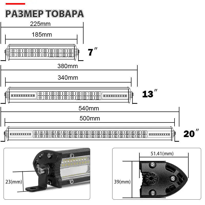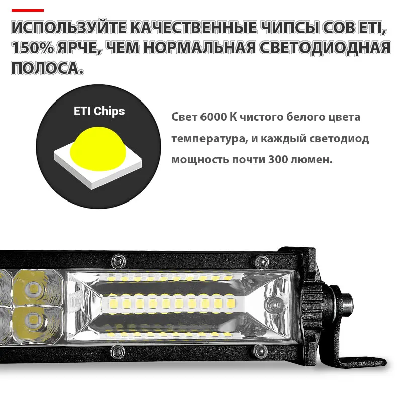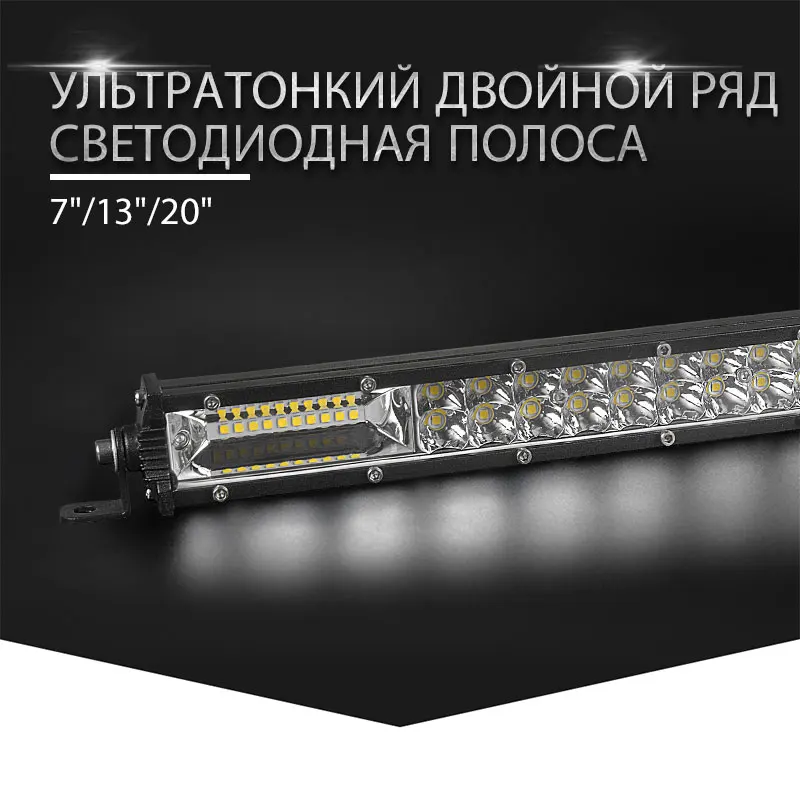 Тонкий двухрядная светодиодная балка (7/13/20 inch на ваш выбор)