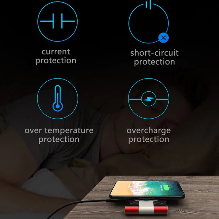Защита от перегрева: когда температура зарядки выше 60 градусов, автоматически прекратите зарядку в течение 1 минуты, затем Перезарядите при падении температуры