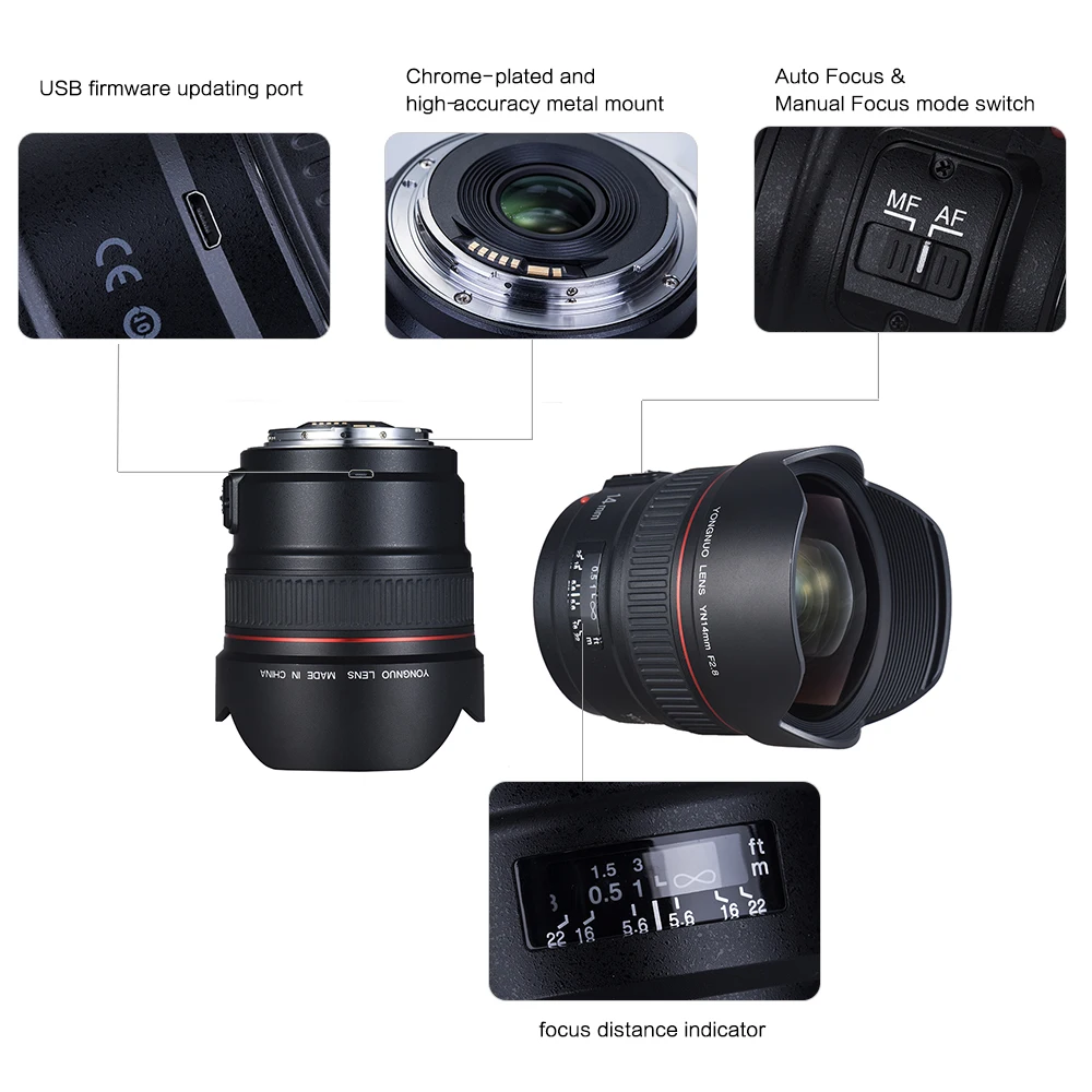 YONGNUO YN14mm F2.8 объектив ультра-широкоугольный объектив для камеры Авто/ручная фокусировка 114 диагональный объектив для камеры Canon DSLR