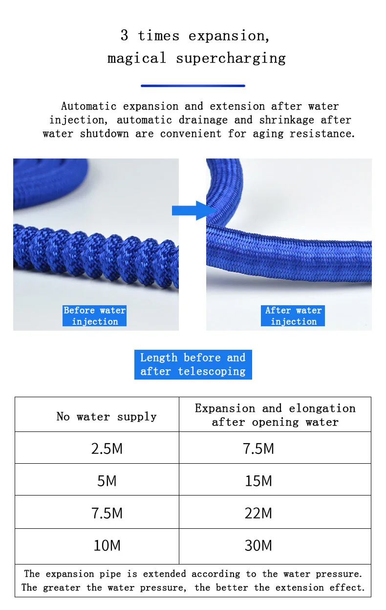 25FT-100FT садовый шланг Телескопический волшебный гибкий шланг для воды высокого качества ПЭТ внутренняя трубка для полива Автомойка разбрызгиватель для полива инструмент