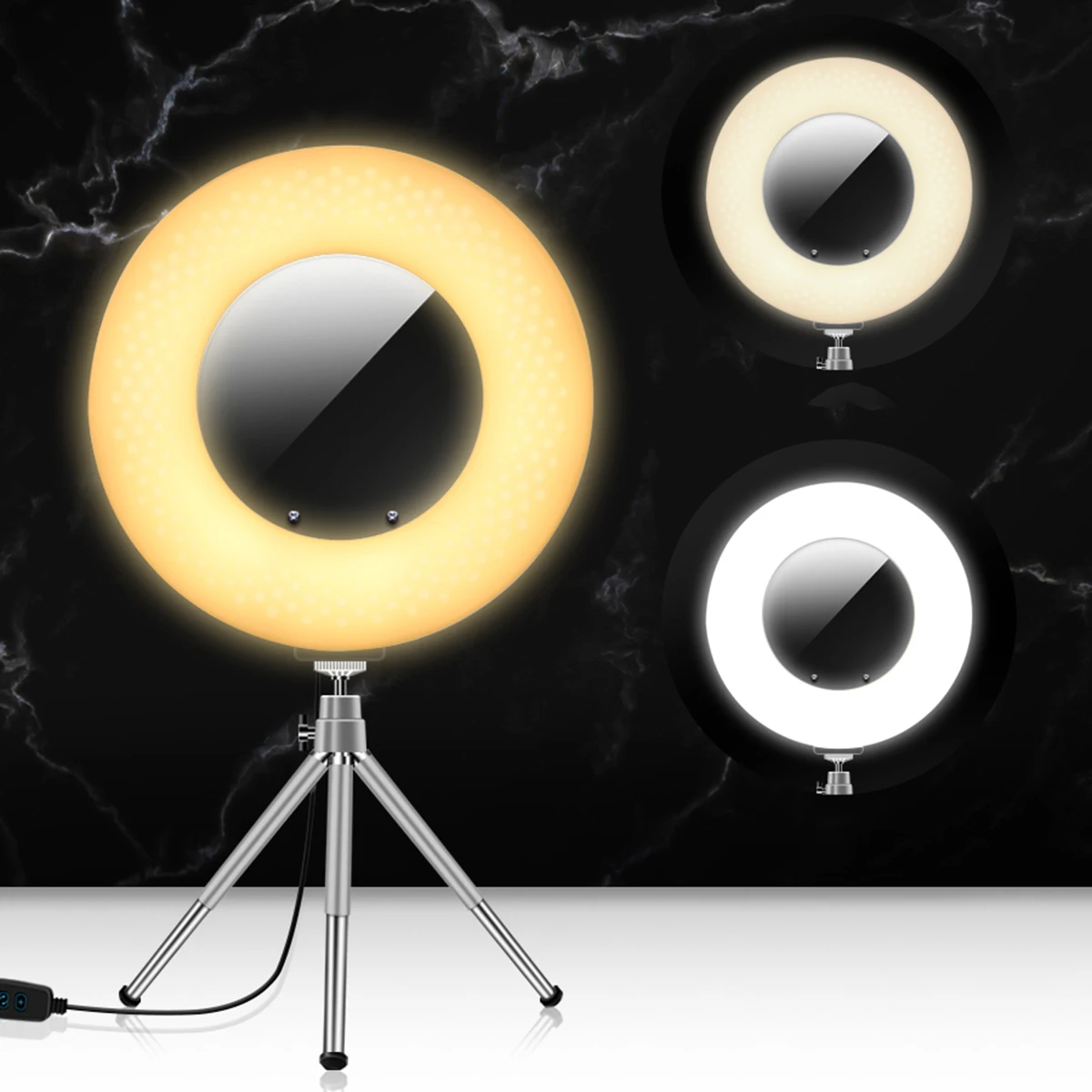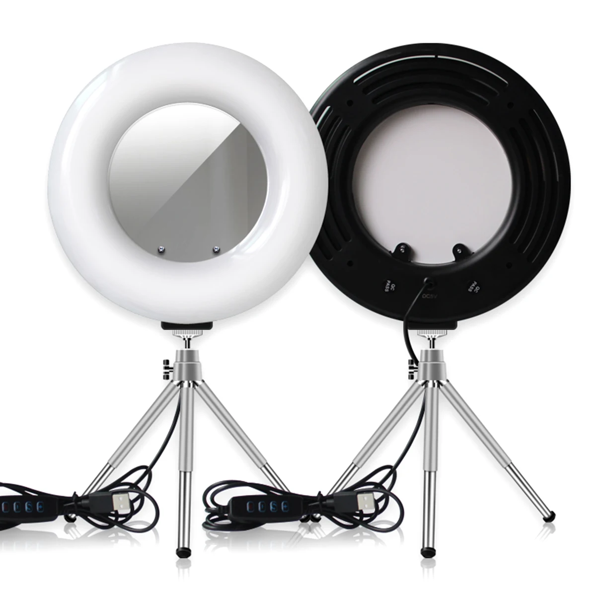 Светодиодный кольцевой светильник 4 в 1 столешница с регулируемой яркостью USB светодиодный Круговое освещение с зеркальный штатив держатель для телефона в машину для студий с живым звуком для макияжа