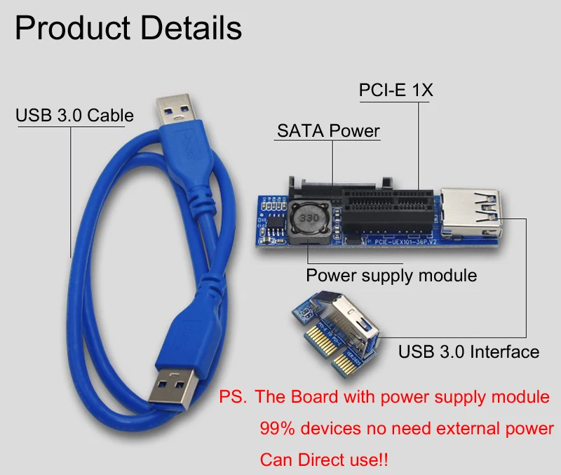 Новый PCI-E PCI E Express 1X к 1X расширитель адаптер переходная карта USB 3,0 кабель SATA питание для шахтера Шахтерская материнская плата PCI-E X1 слот