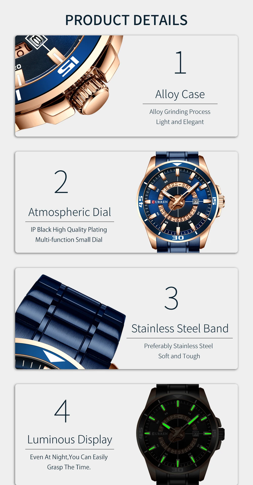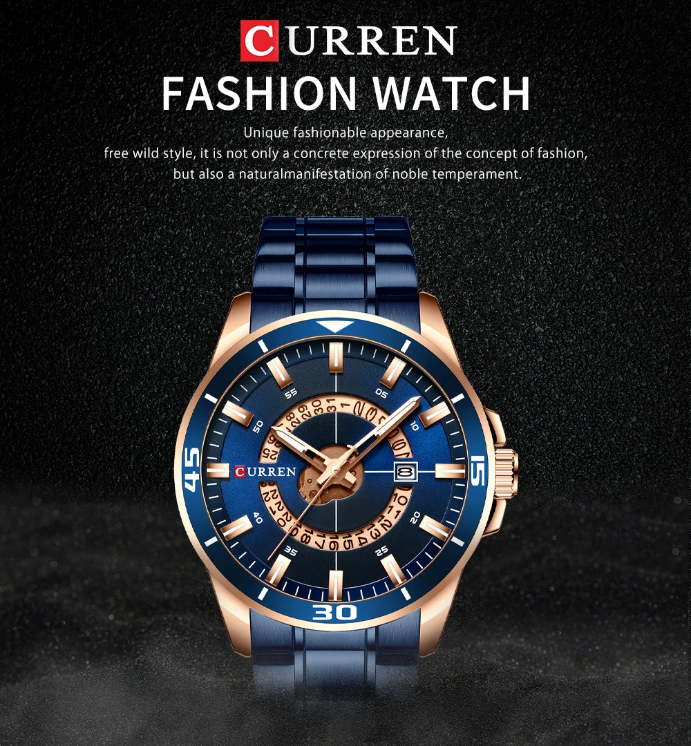 CURREN Мужские часы из нержавеющей стали, модные дизайнерские кварцевые наручные часы с датой, мужские часы Reloj Hombre, мужские часы