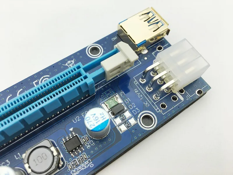 Riser VER009S светодиодный Золотой USB 3,0 PCI-E PCIe PCI Express 1x к 16x Riser Card SATA к 6Pin для BTC Bitcoin Miner Antminer Miner