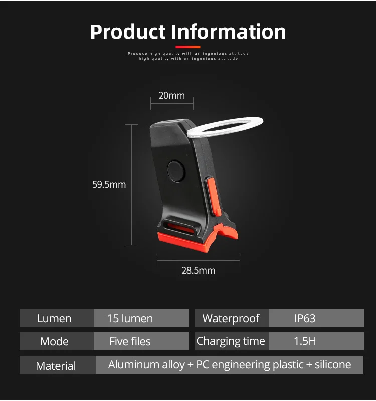 1. Светильник источник: A/B/C/D Стиль COB красный светильник E/F/G Стильный COB красный синий светильник 2. A/B/C/D светильник режимов ing Стиль: сильный светильник, слабый светильник, мигающий Предупреждение ющий светильник, медленное мигание 3. E/F/G светильник режимов ing Стиль: сильный светильник (красный), сильный светильник (синий), слабый светильник (красный), слабый светильник (синий), двойной мигающий 4. Материал: черный ПК инженерный пластик + светильник из алюминиевого сплава 4. Количество светильник: 20 лм 5. Видимое расстояние: 150 м 6. Уровень водонепроницаемости: IP63 7. Время работы: 5-10 часов в зависимости от режима использования