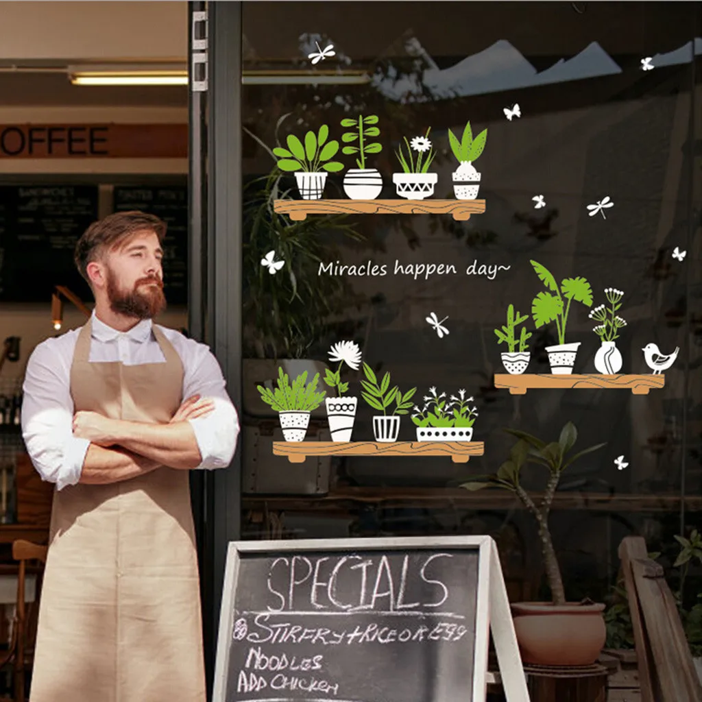 Растения в горшке магазин стеклянные двери кафе украшения настенные наклейки