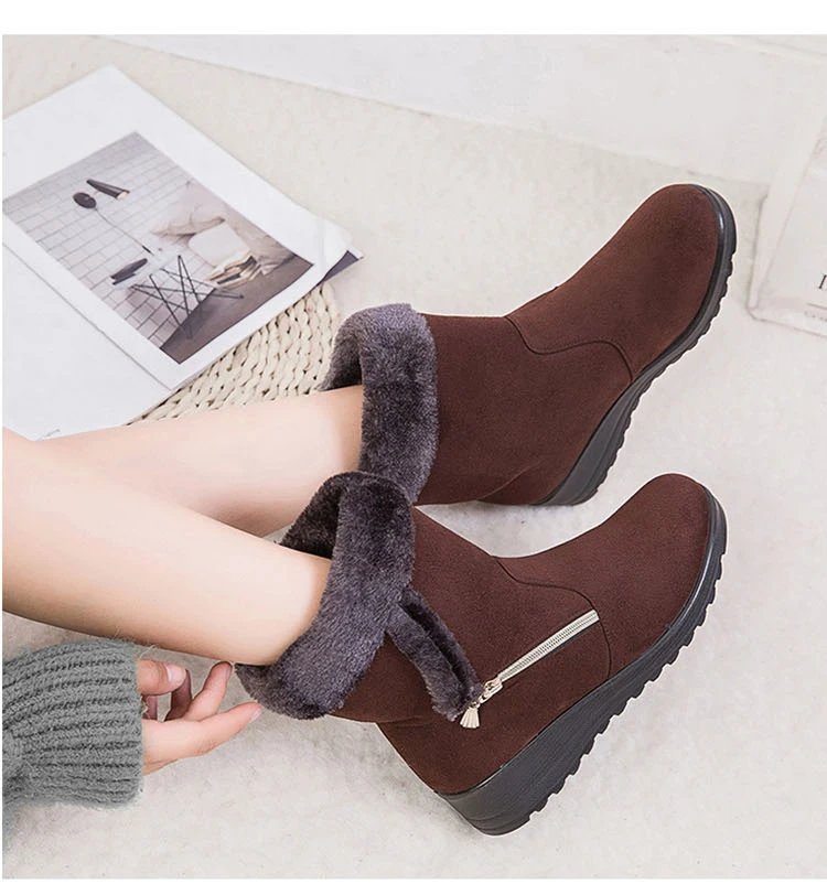 Новинка; женские теплые однотонные Нескользящие зимние сапоги; водонепроницаемые женские зимние сапоги; женская теплая обувь на толстом меху; хлопковая обувь