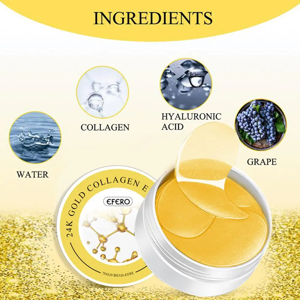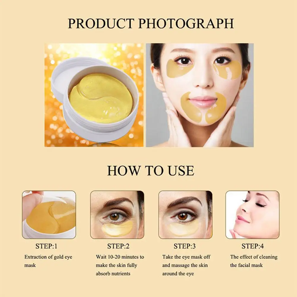 60 шт., Золотая коллагеновая маска для глаз, Питательная, увлажняющая, против морщин, накладки для глаз, темные пятна, удаление темных кругов, отечность