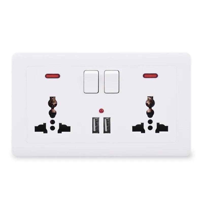 Розетка 2 комплекта Универсальная 3 отверстия переключаемая розетка с неоновым 2.1A двойной usb-порт для зарядки светодиодный индикатор 146 мм * 86 мм
