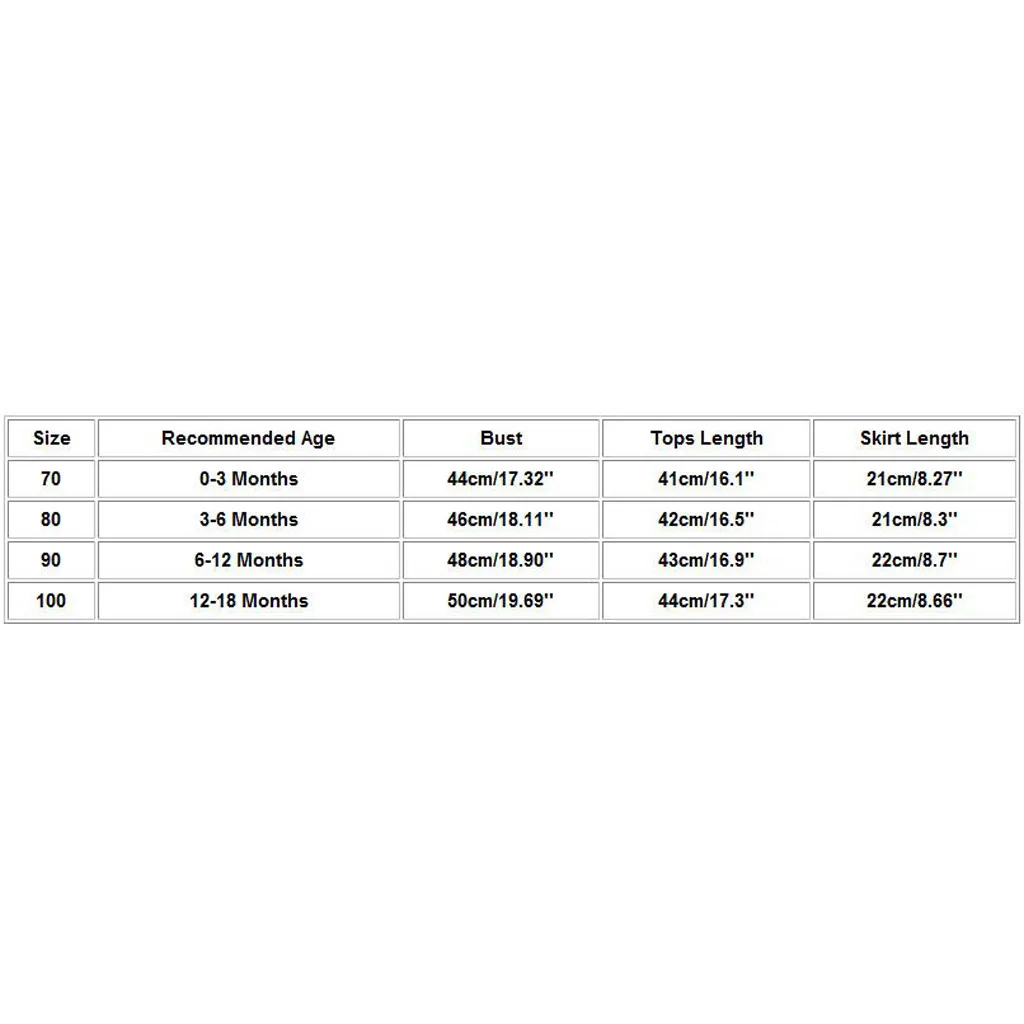 Размер Рекомендуемый возраст Обхват груди Топы Длина Юбка Длина 70 0-3 месяца 44 см/17,32'' 41 см/16,1'' 21 см/8,27'' 80 С диагональю экрана 3-6 месяцев 46 см/18,11'' 42 см/16,5'' 21 см/8,3'' 90 6-12 месяцев 48 см/18,90'' 43 см для ухода за ребенком для мам/16,9'' 22 см/8,7'' 100 12-18 месяцев 50 см/19,69'' 44 см/17,3'' 22 см/8,66''