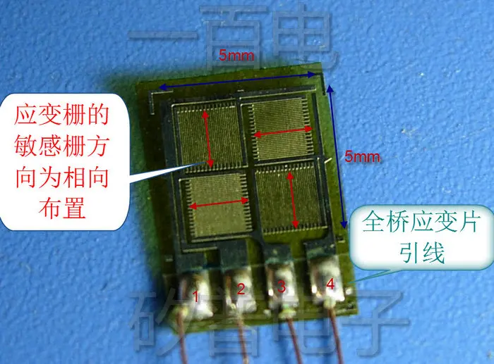 Полный мост измеритель деформации имеет базовый размер 9,6 мм * 8,2 мм.