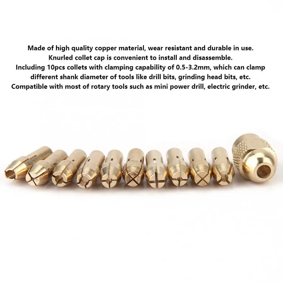 11 шт. 4 кулачковый Медь сверлильный патрон Набор цанг для мини-электрический шлифовальный станок вращать инструмент 0,5-3,2 мм