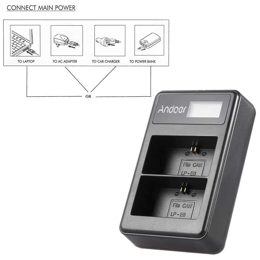 Andoer LP-E6 светодиодный дисплей литий-ионный аккумулятор зарядное устройство 2 слота USB кабель комплект для Canon EOS 6D 7D 70D 60D 5D Mark III Mark II