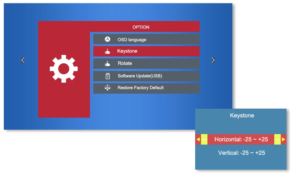 Поддержка электронной коррекции трапецеидальных искажений по горизонтали и вертикали ± 35 °