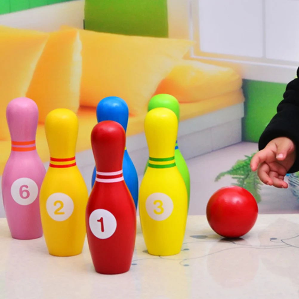 7 шт Боулинг булавки и мяч Деревянные красочные образовательные игрушки для детей ясельного возраста
