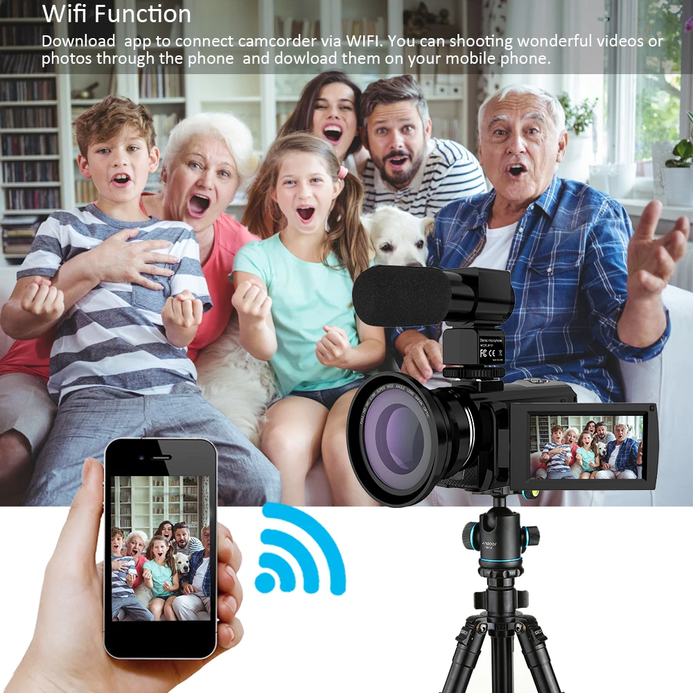 Функция Wi-Fi: можно загрузить мобильное приложение (N4KDigitalVideo), затем достичь Wi-Fi соединения между видеокамерой и мобильным приложением, чтобы делать фотографии и записывать видео с помощью мобильного приложения, А также отправка замечательных фотографий или видеоклипов с цифровой видеокамеры на ваш телефон, Удобно делиться ими в своей социальной сети для записи деталей жизни.
