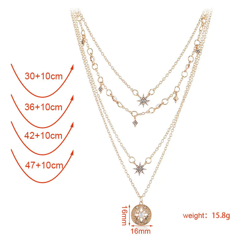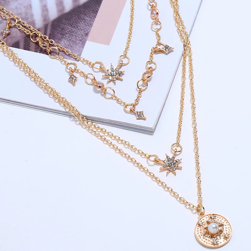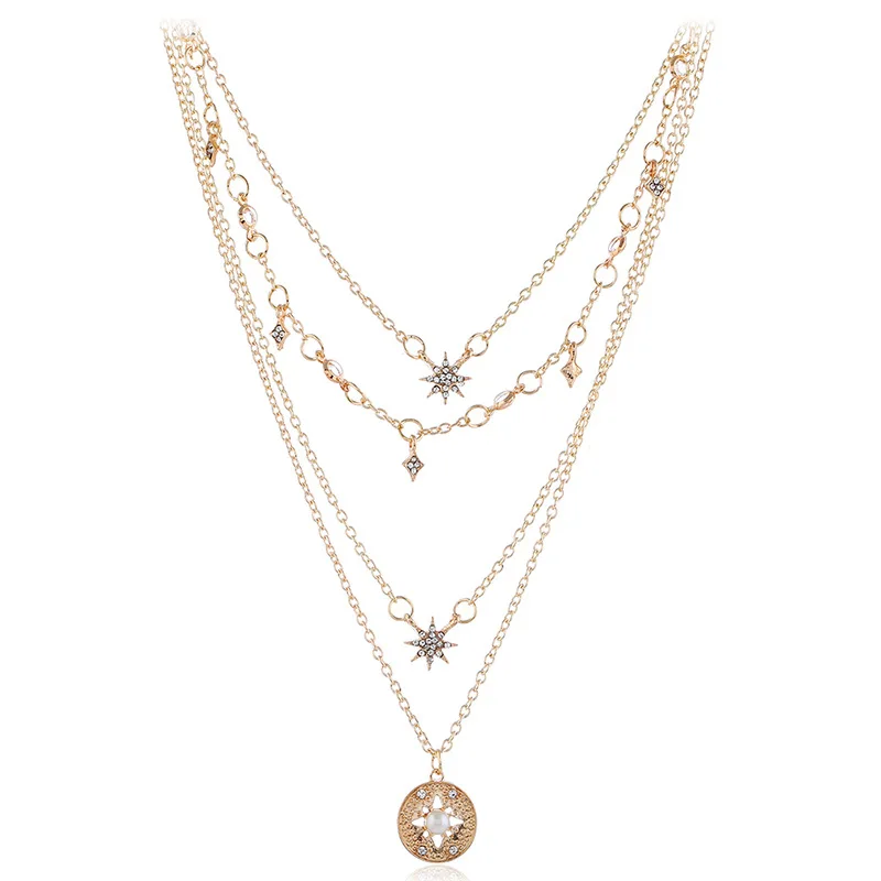 2019 Fashion Star Round Pendant Women Multi-Layer Necklace Rhinestone Crystal Necklaces Charm Trendy Jewelry Christmas Gift