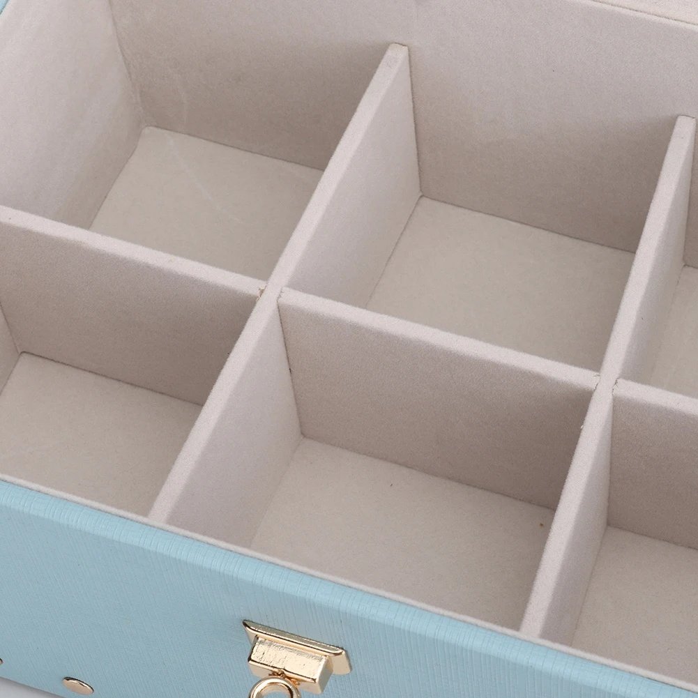 The lid of the box is equipped with a mirror, easy for you to wear your jewelry. The inner use soft material, protect your jewelry from scratching and damaging. Two layers jewelry can help you classify your different type of jewelry, well-organized. With a lock to open, effectively protect your jewelry, safe and practical. Suitable for store jewelry such as earrings, necklace, or can also store some small items.