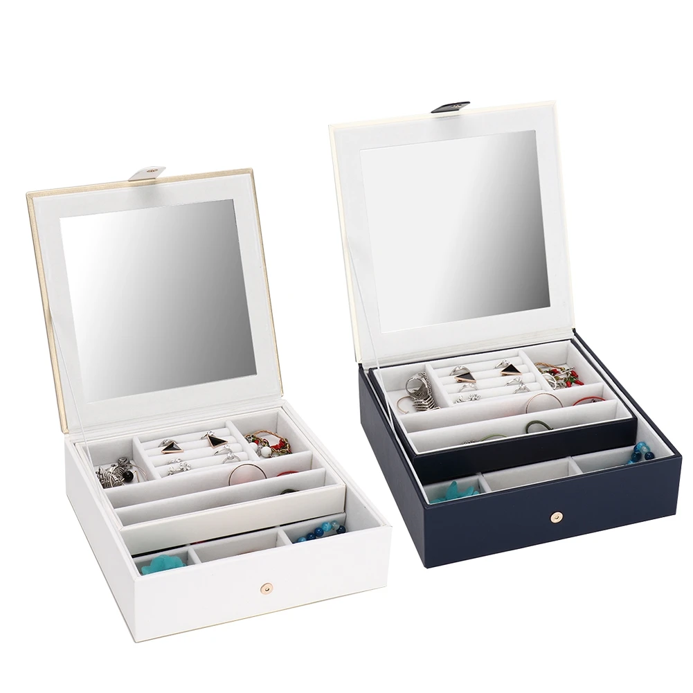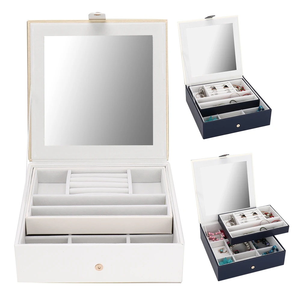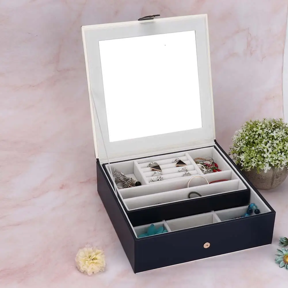 2 слоя PU серьги из кожи кольца коробка для хранения ювелирных изделий держатель Органайзер коробка