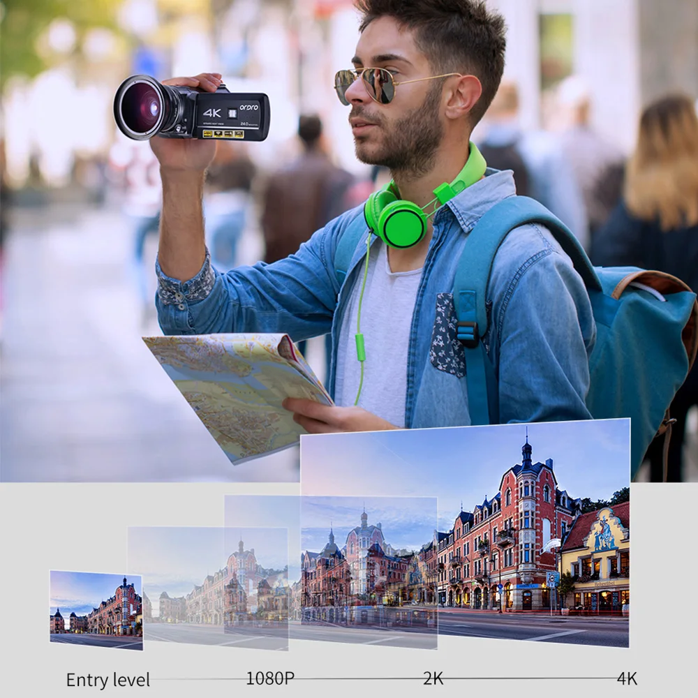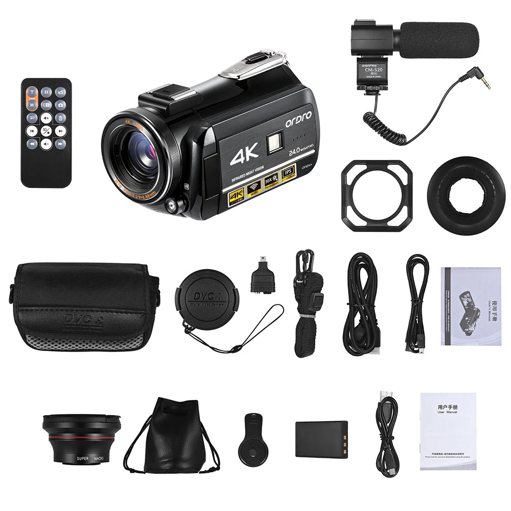 ORDRO AC3 4K 24MP цифровая камера с Wi-Fi для видео Камера видеокамера DV 3,1 дюймов IPS ЖК-дисплей с сенсорным экраном, 2 * батареи + объектив + микрофон + светозащитная бленда объектива