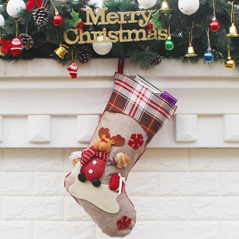 Наименование: декоративные рождественские носки (большие) Материал: шерстяная матовая ткань; Хлопковая клетчатая ткань Один вес: 100 г Технические характеристики изделия: высота 44,6 см Ширина: 22,5 см Описание: Это украшение Санта-Клауса. Подходит для особых случаев. Торговые центры и супермаркеты. Фасады магазинов. Рождественские праздники для домов и других мест.